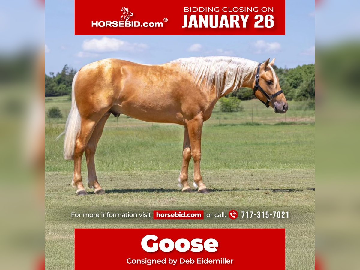 𝐉𝐀𝐍𝐔𝐀𝐑𝐘 ⭐️𝑨𝒍𝒍 𝑺𝒕𝒂𝒓 𝑳𝒊𝒏𝒆𝒖𝒑⭐️ Happening now thru MONDAY | JANUARY 26th - Available EXCLUSIVELY on HorseBid's website! For more details and to register visit: www.Horsebid.com CONSIGNOR CONTACT: Deb Eidemiller 717-315-7021 LOCATION: Whitesboro, TX BREED: QH REGISTERED: Yes REGISTERED NAME: Smart Out Chic COLOR: Palomino HEIGHT: 15 AGE: 3 GENDER: Gelding If you are in the market for a standout looker for this Futurity season, look no further. “Goose” is a gorgeous Palomino gelding guaranteed to turn heads no matter what direction you take him in. He is sired by the great “Tricked Out Spook” ($71,803 LTE) who has a sire earning of $815,911, producing Reiners, Ranch Riders and Reined Cow Horses. His dam is a granddaughter of the great Smart Chic Olena. "Invitational Futurity and 100X Stakes Eligible, NRHA & NRBC Enrolled, Eligible for NARS & All Star Enrollment." Goose is a beautiful golden Palomino with a long white mane and thick white tail. He is a solid built 15 hands with correct conformation, pretty head and great mind. He comes out every day quiet and ready to do his job. He has been in training most of the year with Francesco Martinotti and has a strong foundation with spins, circles, lead changes and a BIG stop. He is a very pretty mover with lots of cadence and smooth to ride. He is “Invitational Futurity & 100X Stakes Eligible, NRHA & NRBC Enrolled, Eligible for NARS & All Star Enrollment”. He is only being sold due to the owner changing disciplines. Goose has endless possibilities in or out of the arena. Chase your dreams in the NRHA pen, make him a standout Ranch Riding horse or just admire his beauty on the trails. He is quiet enough to be a Youth or Non-Pro horse. We can’t say enough good things about him. Goose comes with clean X-rays and we welcome anyone to come meet him and try him out. You won’t be disappointed. UTD on all vaccinations. Nationwide shipping can be arranged. Feel free to reach out to Francesco Martinotti at (903)820-6457 or Deb at (717)315-7021.
