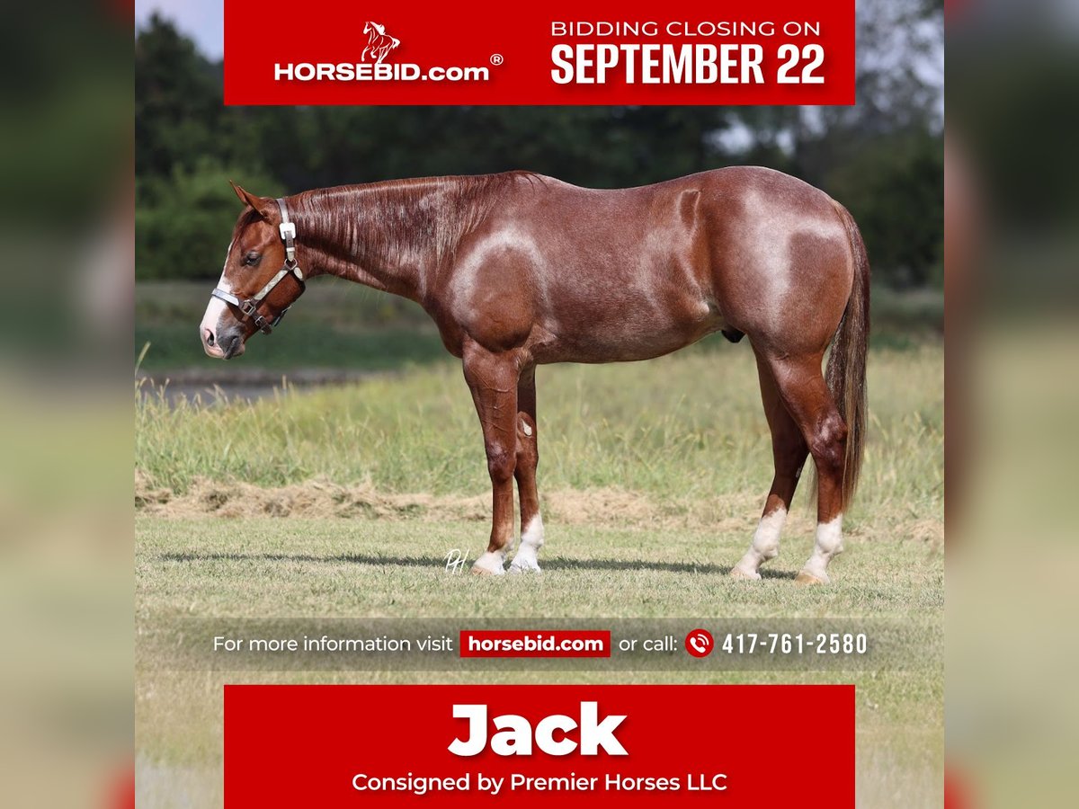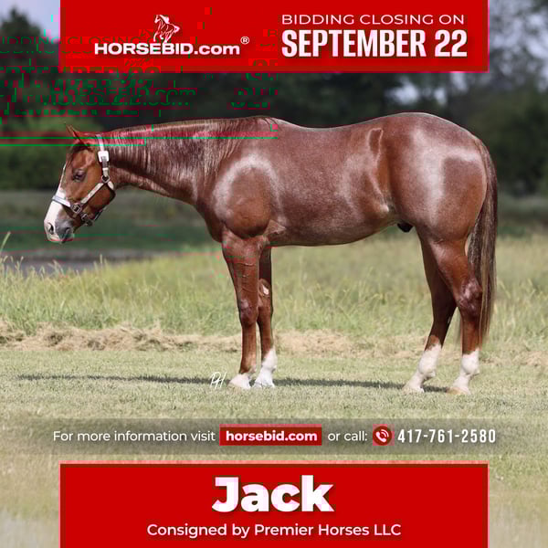 🍁𝒕𝒉𝒆 𝐅𝐀𝐋𝐋 𝑺𝒑𝒆𝒄𝒕𝒂𝒄𝒖𝒍𝒂𝒓🍁 Happening now thru MONDAY | SEPTEMBER 22nd - Available EXCLUSIVELY on HorseBid's website! For more details and to register visit: www.Horsebid.com CONSIGNOR CONTACT: Premier Horses LLC 417-761-2580 LOCATION: Buffalo, Missouri BREED: Quarter REGISTERED: Yes REGISTERED NAME: Americas Gotya Hookd COLOR: Red Roan HEIGHT: 15 AGE: 2 GENDER: Gelding If you are looking to step your game up in the horse industry, look no further! Because Americans Gotya Hookd is going to turn heads when you hit the show pen. There are not many youngsters that look, ride, and are bred as exceptional as he is. Jack is sired by the infamous Americansnexttopgun NRHA LTE: $425,893 and PE: $200,000+ with limited foals in the show pen. His dam, Electric Gun Berry NRHA LTE: $5,000+ and she is sired by CR Berry NRHA Money earner and producer. Jack has a stacked pedigree top and bottom, he is well on his way to follow in their footsteps. He has been in one of the most prestigious reining programs since the day he was born, always had the best of care. Jack was started under saddle the beginning of this year and is on track to go show next year. He is undoubtedly one of the brokest 2 year olds you will ever encounter. He rides around true one handed, huge stopper, smooth spins, and easy to guide. Jack is incredibly talented, loves to please, and willing to do anything asked of him. Jack does not just ride around fancy but also is fun to take down the trails, work calves, and go over the obstacles on. He goes over most of the obstacles, through water, over bridges, and down the road. He carries the American flag, bounce the yoga ball off of him, and ride him bareback. He absolutely loves people and easy to be around. Jack stands to be brushed, bathed, saddled, bridled, and even if you need a mounting block to get on. Jack will capture your heart and make you fall in love. Whether you want to hit the trails, show pen, or work cattle Jack will give it his all every time. He is UTD on coggins, worming, dental, and shoeing. He has current X-rays done on 09/10/2025. You will have a hard time finding a gelding that offers everything Jack does, so don’t miss this amazing opportunity!