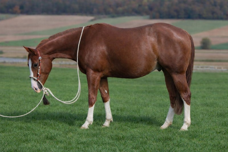 Sorrel with 4x white ! Liroy is a super handsome and perfectly built yearling. A top young sport and leisure partner who has a lot of potential. He has very nice movements and a great foundation. Standing in the old Quarter type. He has a very cool and old branch pedigree. Sire Ricochet Rooster , Gallo del Cielo And mom a Shine N Mister , Shining Spark , Smart Little Lena mom ! Nrha Germany paid in On request EWU