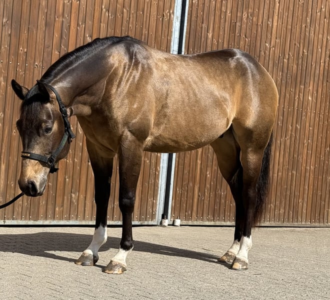 Toshi ist ein sehr unkomplizierter Wallach, in Track für die futurities. Sehr guter beweger, bequem, hat sehr viel stop und Turn, wechselt brav. Showfertig. Weiteres gerne auf Anfrage.
