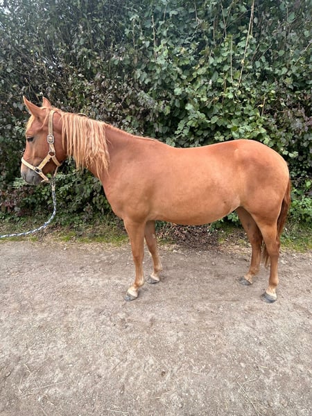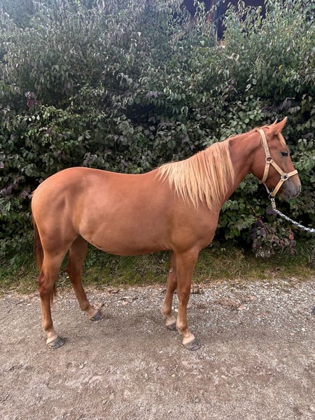 **Advertisement for sale: American Quarter Horse gelding** For sale: A beautiful American Quarter Horse gelding, born in 2022. This young chestnut has a height of 140 cm and is ideal for western riding. He is eager to learn and talented, perfect for ambitious riders looking for a reliable partner. Please contact us if you are interested and for further information. Can be farriered and loaded Regularly wormed