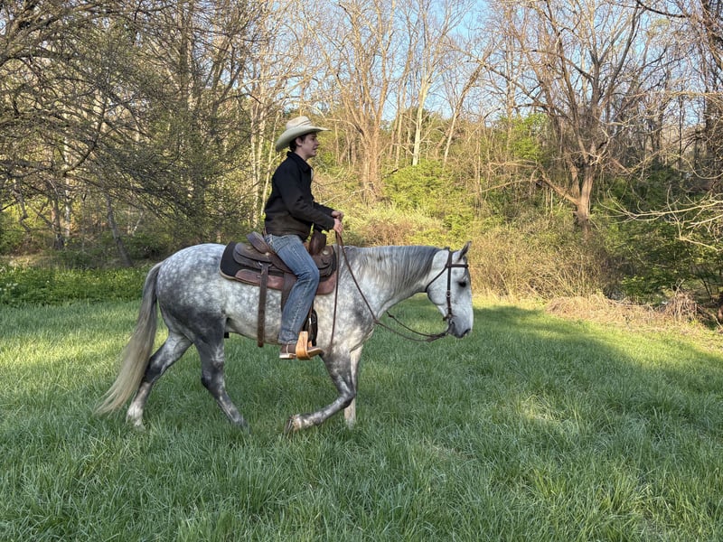 ▪️▫️◾️𝐭𝐡𝐞 𝑴𝒂𝒚 𝐒𝐞𝐥𝐞𝐜𝐭◾️▫️▪️ Happening now thru MONDAY | MAY 4th - Available EXCLUSIVELY on HorseBid's website! For more details and to register visit: www.Horsebid.com CONSIGNOR CONTACT: Keystone Quarter Horses 717-758-6887 LOCATION: Shippensburg, PA BREED: Quarter Horse REGISTERED: No REGISTERED NAME: Ollie COLOR: Dapple Grey HEIGHT: 14 AGE: 4 GENDER: Gelding Meet Ollie, a truly eye-catching 14 hh, 4-year-old dapple grey gelding with a unique look and all the ability you could want in a young horse. With his striking dapple pattern and clean build, he stands out in any setting and is the kind that gets noticed wherever he goes. Ollie is good with cows and shows natural instinct and interest, making him a strong roping and cutting prospect. He’s athletic, quick across the ground, and has the kind of agility and awareness that make him fun to watch and even better to ride. He reads cattle well and is developing the confidence and skill to really excel with the right person to take him further. One of Ollie’s best qualities is his solid “whoa and go.” He has a great stop when you ask, and he’s willing to move out when it’s time to work, giving you that balance of control and responsiveness that makes a horse enjoyable and dependable. He rides soft, stays attentive, and has a willing, trainable mindset that makes him a pleasure to work with. He’s been used on the ranch and has proven himself to be level-headed and capable, handling long days and different tasks without fuss. Ollie takes new situations in stride and keeps a steady attitude, making him a reliable partner whether you’re checking cattle, covering rough ground, or putting in a full day’s work. Out on the trail, Ollie is just as impressive. He is sure-footed, confident, and easy to get along with. He rides out quietly, crosses obstacles without hesitation, and is the kind you can enjoy whether you’re going for a relaxing ride or putting in miles. With his amazing color, natural cow sense, strong foundation, and versatile skill set, Ollie is a standout young gelding with a bright future ahead. He has all the tools to go on in the performance world or continue being a dependable ranch and trail horse. Don’t miss the opportunity to own a young horse with this much potential, ability, and eye appeal.