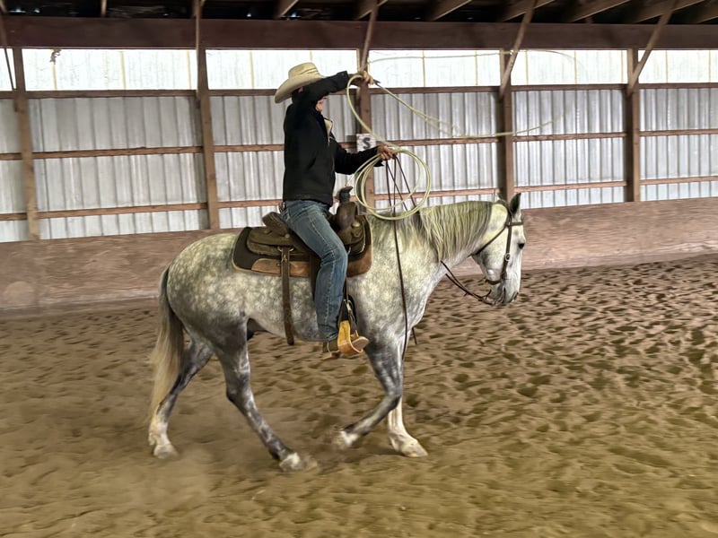 Ollie, hongre quarter horse gris argenté tacheté de 4 ans, 14 mains