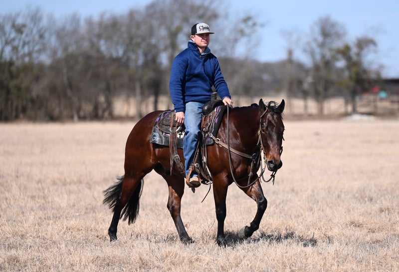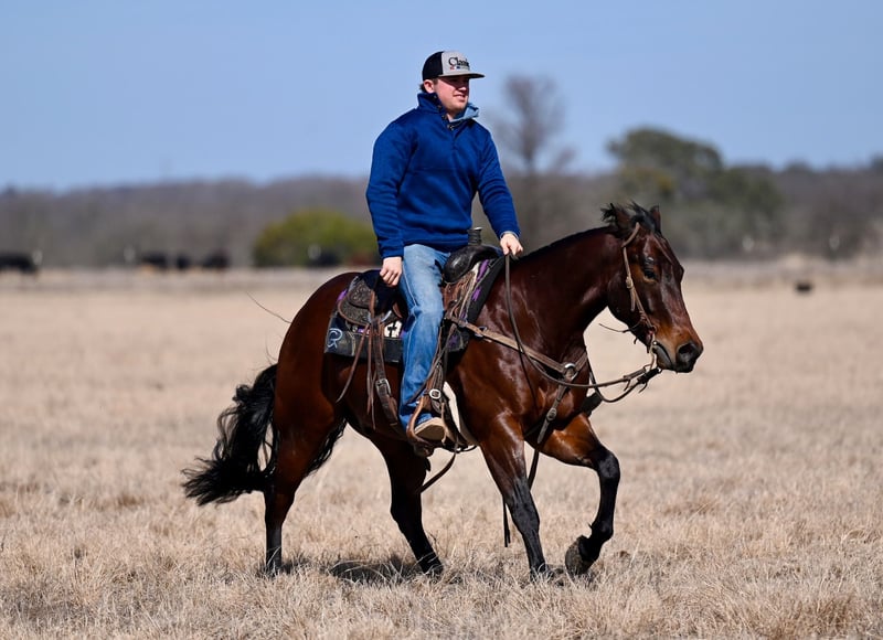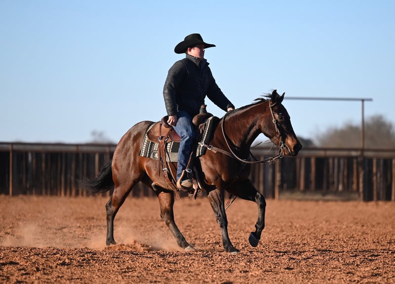 𝐍𝐀𝐓𝐄 𝐁𝐀𝐋𝐋𝐄𝐑𝐈𝐍𝐎 𝐇𝐎𝐑𝐒𝐄 𝐂𝐎'𝐬 ★ ℝ𝕀𝔸𝕋𝔸 𝔹𝕌ℂ𝕂𝕃𝔼 ★ 𝑺𝒉𝒐𝒘𝒄𝒂𝒔𝒆 Happening now thru SATURDAY | FEBRUARY 28th - Available EXCLUSIVELY on HorseBid's website! For more details and to register visit: www.Horsebid.com CONSIGNOR CONTACT: Nate Ballerino Horse Co 254-716-9588 LOCATION: Waco , TX BREED: Quarter Horse REGISTERED: Yes REGISTERED NAME: HOT PIECE OF HASH COLOR: Bay HEIGHT: 14.1 AGE: 4 GENDER: Gelding Hushpuppies is a gelding sired by HASHTAGS, a Top 5 million-dollar sire, and out of the Spots Hot mare BET SHES HOT, an earner of over $16,000. He has been used as a turnback horse, is broke, handy, and cow-savvy with a solid foundation. This gelding has a ton of bone and muscle and would easily make a rope horse or could go on in the ranch versatility. He has been pen roped on and used outside gathering and sorting pairs. Athletic, willing, and versatile—a great prospect that can go any direction.