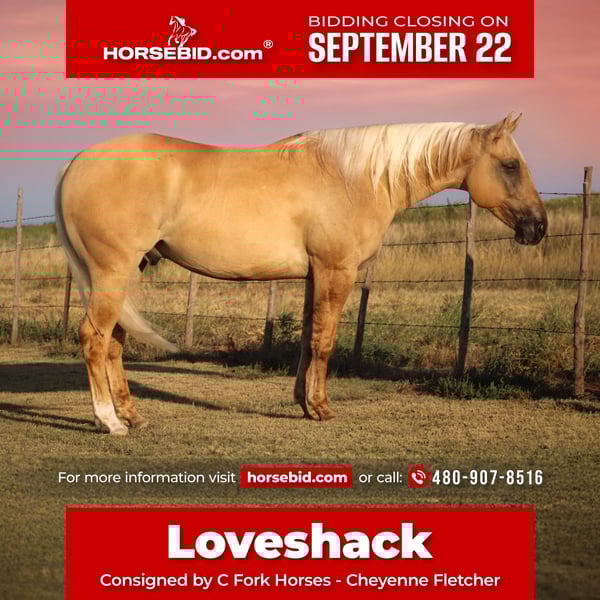 🍁𝒕𝒉𝒆 𝐅𝐀𝐋𝐋 𝑺𝒑𝒆𝒄𝒕𝒂𝒄𝒖𝒍𝒂𝒓🍁 Happening now thru MONDAY | SEPTEMBER 22nd - Available EXCLUSIVELY on HorseBid's website! For more details and to register visit: www.Horsebid.com CONSIGNOR CONTACT: C Fork Horses - Cheyenne Fletcher 480-907-8516 LOCATION: Amarillo, TX BREED: American Quarter Horse REGISTERED: Yes REGISTERED NAME: GARFIELDDRIFTDREAMS COLOR: Dunalino HEIGHT: 14.2 AGE: 3 GENDER: Gelding Every now and then a young one comes along that makes you look twice. Loveshack is a 2022 dunalino gelding who has already proven himself on a yearling cattle operation. He’s spent sunup to sundown sorting, pulling, and shipping cattle, and he handles it like an old hand. He’ll square up when cattle push back, then walk away quiet when the work is done. Mud, mess, or mayhem, he’s steady and surefooted through it all. Not many 3-year-olds can say they’ve already carried a full-time job, but Loveshack can. He is truly the kind of horse that meets you at the gate in the morning, ready for whatever the day holds, steady and sure like he’s been at it for years. He is no stranger to early mornings and even loads and unloads himself on the trailer. Talk about liking his job. One of his strongest traits is his eye for cattle. He slips through a herd like he already knows which one you’re after, staying cool-headed when pressure builds. Nothing much rattles him — not 1,200 pounds leaning into him, not a four-wheeler rattling past, not the clang and rattle of equipment. He’s the kind you can trust to stand up alongside you. My favorite thing about Loveshack? When I’m pulling a sick one, he stays so calm through the process, never getting his head above the saddle horn, which helps keep the cattle calm too. He’s just as solid in the arena. Loveshack has already started tracking calves with the kind of feel most take months to find. From day one he acted like a veteran and showed he’ll make a rope horse overnight. No fuss, no fight, just all business. He’s honest and simple, the kind anyone can get along with and keep moving forward. He lopes collected circles with his head down, catches both leads, stays soft in the bridle, and melts into his stops. Loveshack has also seen some country. He’s been ridden through creeks and timber back east, and we’ve trail ridden him all through Palo Duro Canyon, across bridges, down steep rocky embankments, up rugged cliffs, and through the quiet flats. He takes it all in stride. Bicycles zoom by, hikers come and go, and he doesn’t so much as flick an ear. He’s steadier on the trail than most people carrying the map. And then there’s his personality. Loveshack isn’t just broke and dependable — he’s a hoot. He’s got that curious streak that keeps him fun without ever crossing the line into disrespectful. On a trail break the other afternoon he reached over and pulled the park map out of my husband’s back pocket, then waved it around like he was ready to take over navigation. That’s Loveshack: rock solid when you ask, but with just enough character to keep you smiling. Not every horse brings that kind of joy to the table. Loveshack stands 14.2 hands and is sound, healthy, and current on dental, shoeing, vaccinations, and deworming. Records are available. Vet checks are welcome, and we would also love for you to come meet and try him yourself. He is located in Amarillo, Texas, and we are happy to help arrange shipping nationwide. Give Cheyenne a call with any questions or to schedule a time to see him at (480) 907-8516. Buy with confidence — we are proud to offer him. Loveshack has the kind of foundation and real-world experience most horses never get. Hard to make one better. Horses like him don’t come around often, and the next chapter is yours to write.