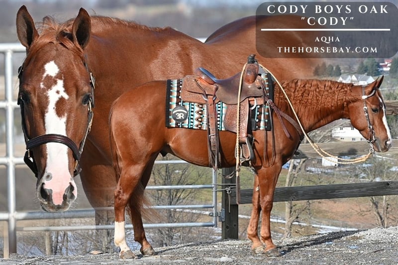Meet Cody! 2022 AQHA Gelding Wow! This guy is put together right—he’s got that rich sorrel color and beautiful movement. Cody has a smooth walk, trot, and canter, a solid stop, and a nice turn. Cody has been there and done that. He’s helped round up cattle and drag them to the branding pen. He has a solid foundation in the arena, and we feel he would really shine in ranch riding and ranch trail classes. Cody has also been on lots of trail rides and confidently crosses all types of terrain, including creeks, logs, and ditches. He’s been around all aspects of farm life and is a sweetheart in the barn—quiet in the stall and always Looking to greet you when you walk in. Cody is an all-around solid individual and one you won’t want to miss out on. He is 100% sound with no vices.