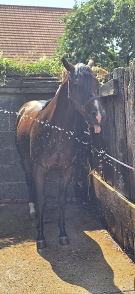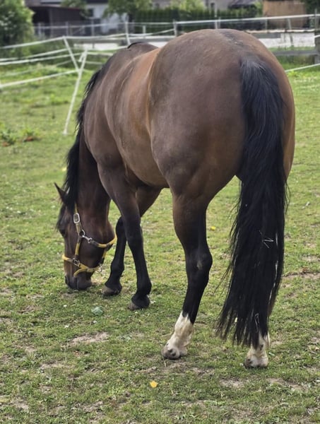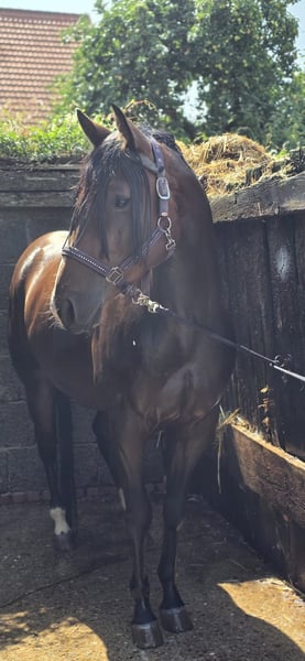We are reluctantly selling our 4-year-old Quarter Horse gelding. He has a great build and a character of gold. He wants to please everyone. He is familiar with groundwork, grooming, lunging, and rider weight. He is very willing and eager to work. Unfortunately, he is not getting enough attention with us. We wish for a nice home where he also has playmates. Pictures and videos are available upon request. He does not have American papers yet. However, these could be applied for. He is even more beautiful than in the photos. You will fall in love with him immediately.