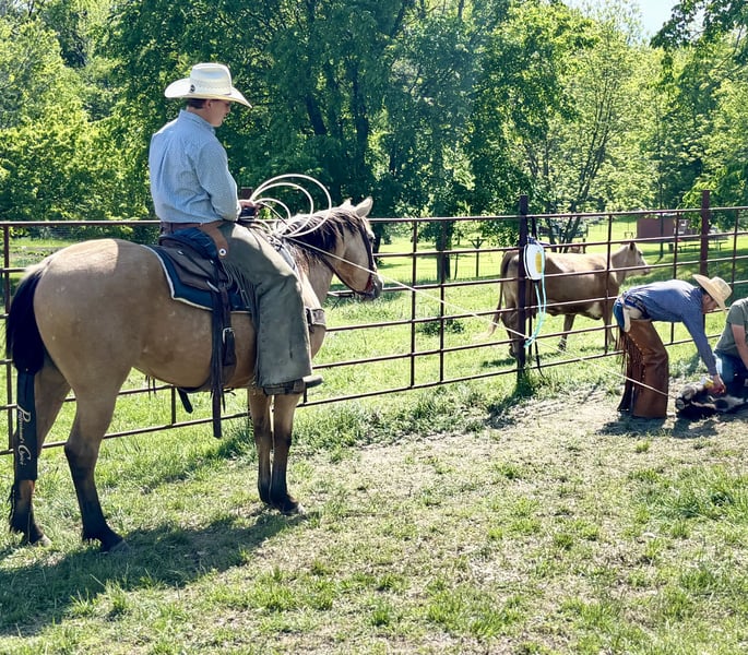 ⚜️ 𝓽𝓱𝓮 𝐇𝐨𝐫𝐬𝐞𝐦𝐚𝐧'𝐬 𝓢𝓱𝓸𝔀𝓬𝓪𝓼𝓮⚜️ Happening now thru MONDAY | DECEMBER 1st - Available EXCLUSIVELY on HorseBid's website! For more details and to register visit: www.Horsebid.com CONSIGNOR CONTACT: Casey Schwieter- Schwieter Land and Livestock 660-676-3849 LOCATION: Shelbina, MO BREED: AQHA REGISTERED: Yes REGISTERED NAME: Jeff My Tivio COLOR: Buckskin HEIGHT: 14.3 AGE: 4 GENDER: Gelding 2021 AQHA Buckskin Gelding- JEFF MY TIVIO “Steve” An eye-catching 4 year old AQHA registered buckskin gelding that can get a job done and will turn heads while he's doing it. Dependable, versatile, easy to get along with in any environment and just the right size at a thick, 14.3 hands. Steve has the experience and ability to go in any direction-an all around, nice gelding with good foundation bloodlines. Good footed and easy to handle- bathes, loads and hauls. He has a nice one-hand neck rein and catches his leads. He's also been exposed to tarps, flags and isn't afraid of a rope. With lots of exposure, being hauled locally for day work and catch jobs and even to the Nebraska Sandhills for a college ranching internship, Steve has seen the sights. From gathering, roping and dragging during branding season, to riding down the road or on the trails with dogs, wildlife and cattle coming from any direction, on all types of terrain, he remains calm and gets his job done. Speed him up or slow him down- Go rope a bull and then go trail ride. We purchased Steve straight off the farm from the local breeder; He is an honest horse with a bright future ahead. Steve has the looks, ability, personality and is full of potential to become your next forever horse.
