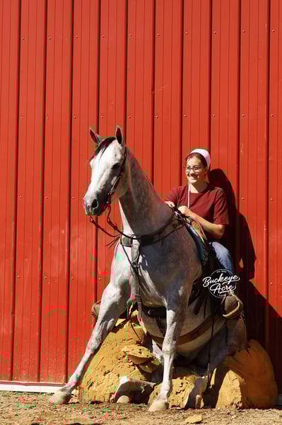 If you are looking for that once-in-a-lifetime kind of partner, the one that makes you smile the moment you see him—meet Grayson. This beautiful 2021 model AQHA gelding stands 14.3 hands tall and wears a stunning dappled gray coat that shimmers in the sunlight. With two white hind socks climbing up to his knees, a kind expression, and balanced conformation, Grayson turns heads everywhere he goes. Versatile, kind, and steady, Grayson is the kind of horse anyone can enjoy—kids, seniors, or advanced riders alike. Whether you are dreaming of showing him one day, heading out on the trails, or just having a trustworthy partner for family rides, Grayson is ready to be your next best friend and adventure buddy. It is not just his looks that make him special is his heart. Grayson is the first to meet you at the gate, ears forward, ready for scratches and attention. He loves people and has that true “want to please” personality that makes every ride a joy. He is quiet and easy to manage in the barn, stands like a gentleman for grooming and tacking, and genuinely enjoys being with his person. Grayson has been on countless trail miles, confidently crossing creeks, stepping over logs, and going up and down hills without a fuss. He has been ridden on state roads through traffic and takes everything in stride. He is just as comfortable in the indoor or outdoor arena, staying calm and consistent wherever you take him. He has been ridden Western, English, and bareback—and no matter which way you saddle him, he takes it all with charm and that same willing attitude. Under saddle, Grayson is smooth and steady, with three gaits you can sit in all day long. He knows his leads, has a good stop, and even a handy little spin. He will side pass right up to the mounting block to make getting on easy. Whether you are practicing in the arena or exploring new trails, he is always willing. He is desensitized to tarps, jugs, whips, and gunfire, making him dependable and safe in any setting. Grayson is up to date on vaccinations, deworming, and shoeing, and he is the kind you can leave in the pasture for a few days—or a few weeks—and climb back on without missing a beat. If this sounds like the horse that you have been looking for, please feel free to reach out to Duane @ 330-231-2324 for more info or to Schedule a day to stop by and see him in person.
