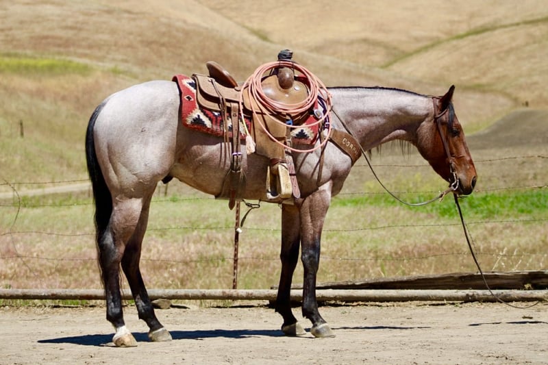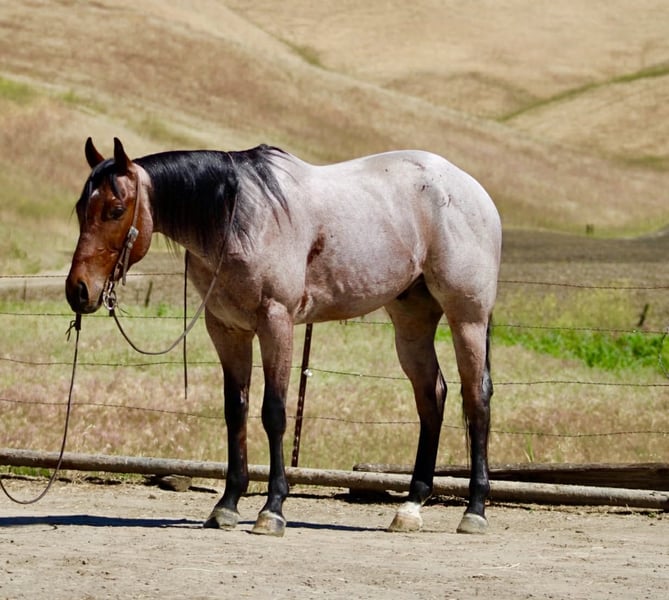 Partenaire de ranch attrayant et pratique, hongre Quarter Horse bai roan de 4 ans