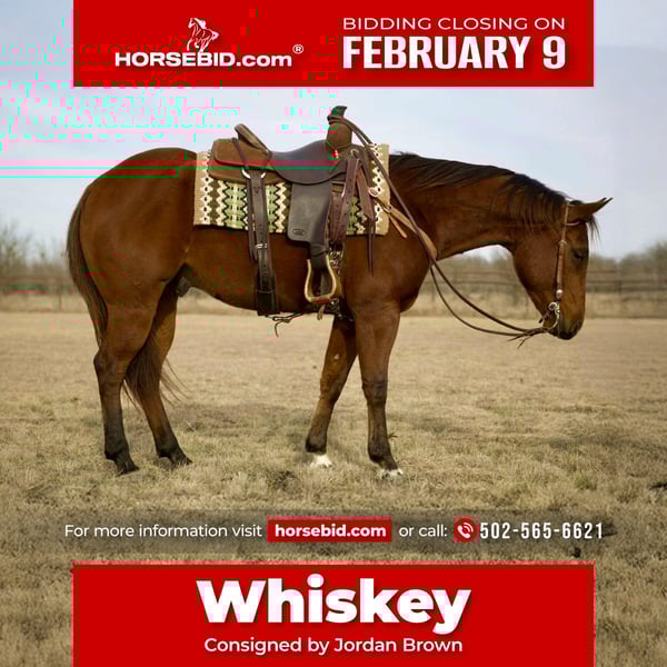 ❤️🔥𝑩𝒆 𝑴𝒊𝒏𝒆 𝐒𝐄𝐋𝐄𝐂𝐓❤️🔥 Happening now thru MONDAY | FEBRUARY 9th - Available EXCLUSIVELY on HorseBid's website! For more details and to register visit: www.Horsebid.com CONSIGNOR CONTACT: Jordan Brown 502-565-6621 LOCATION: Georgetown, TX BREED: AQHA REGISTERED: Yes REGISTERED NAME: SPOOKS DUALIN GUN COLOR: Bay HEIGHT: 15.1 AGE: 4 GENDER: Gelding Whiskey is a home grown 15.1 gelding with the kindest soul and the foundation to make someone a truly enjoyable and safe mount for years to come! Meets you at the gate and enjoys attention of any kind. Raised on a working ranch he has been used outside to do any and all chores and daily duties. Steady and brave outside with a good handle on a loose rein. Does not take advantage of any caliber rider and stays broke with time off. Gentle as a kitten to be around with terrific ground manners, easy to shoe, bathe, tie, load, clip, catch, groom, saddle, mount Loves kids, is unfazed by dogs, equipment, traffic or unfamiliar surroundings. Has been hauled to work on other ranches weekly and is no stranger to field trips. Can’t say enough good things about this guy! Let him speak for himself and come meet him! No vices, quirks or soundness issues.
