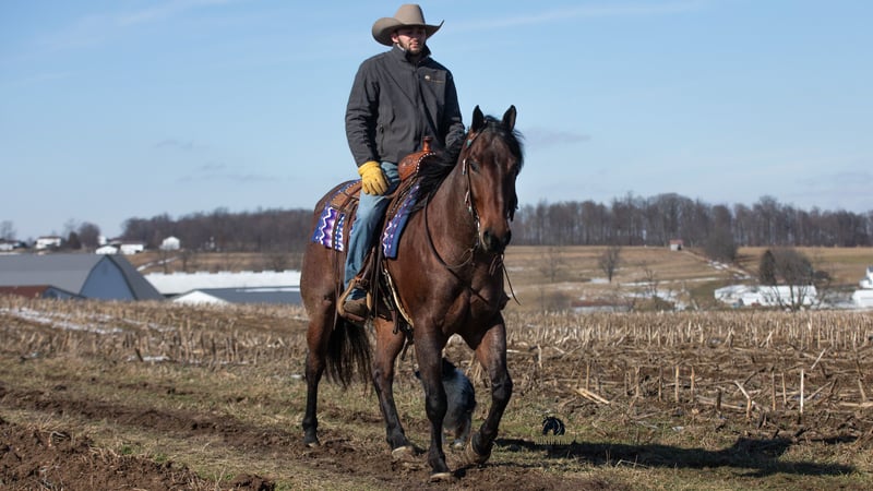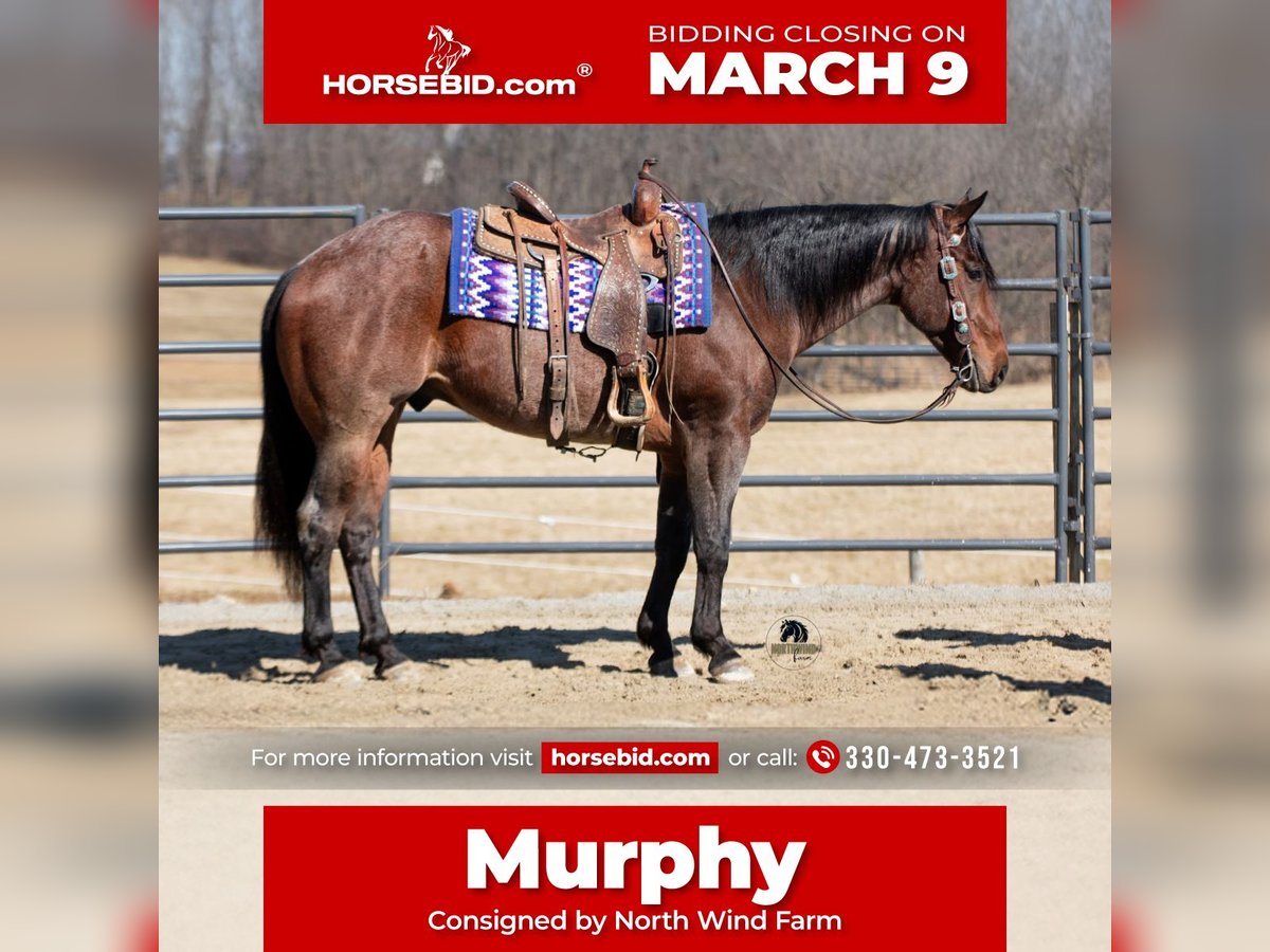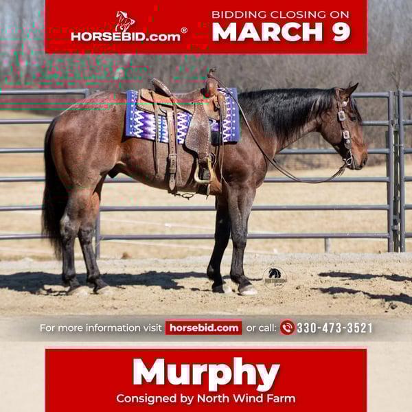 ℳ𝒶𝓇𝒸𝒽 ♦️𝐑𝐈𝐃𝐄𝐑'𝐒 𝐂𝐇𝐎𝐈𝐂𝐄♦️ Happening now thru MONDAY | MARCH 9th - Available EXCLUSIVELY on HorseBid's website! For more details and to register visit: www.Horsebid.com CONSIGNOR CONTACT: North Wind Farm 330-473-3521 LOCATION: Fredericksburg OH BREED: Aqha REGISTERED: Yes REGISTERED NAME: DH Blue Hancock COLOR: Bay roan HEIGHT: 15.1 AGE: 4 GENDER: Gelding Murphy is a 4 yr old red roan AQHA registered gelding standing at 15.1hh. Murphy is as gentle and quiet as the day is long. He is a complete sweetheart! He has the most gentle soul and easy going personality. He has really good ground manners. He stands well for grooming, tacking up, and for getting bathes. He stands well for mounting as well. He is very safe under saddle, and a great trail mount! He will cross creeks, step over logs and watches his step when going up and down the hills. We had rode him on the and he is traffic safe! He will cross all the obstacles and pull the milk jugs and sled. He is used to being around dogs and atvs. Murphy rides well in the arena, he will pick up both leads, stop, and backs up with no problem. He will ride English as well as Western. He has easy gaits and is fun to ride. He moves off of leg pressure and will neck rein, he can also direct rein as well. Murphy is easygoing and gentle. A great trail companion for everyone! ⭐️North Wind Farm is renowned for its quality trail and all-around horses. Our horses are versatile and can excel in any discipline, making them perfect for riders of all levels. Whether you're looking for a reliable trail companion or a horse that can perform in various disciplines, North Wind Farm has the perfect match for you. Our commitment to excellence and passion for equine care ensures that each horse is well-trained, healthy, and ready to meet your needs. Contact us @ Tim (330)600-8840 Lisa (330)473-3521