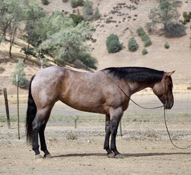 ONLINE AUCTION Place your bids at www.PlatinumEquineAuction.com Starting Bid $3500 Auction ends October 19th, 2025 Need a new saddle? Check out White Rock Saddles on our website or Facebook A Frosty Lou Lou – A Beautiful Dun Roan Mare Who Does It All! Every so often, a mare comes along that has all the right pieces — good looks, the right kind of pedigree, a steady mind, and a willingness to go anywhere you point her. Looking for a mare that turns heads, does her job, and keeps it classy while she does it? Meet Frosty Lou Lou, a 2021 AQHA beautiful dun roan mare standing 15.1 hands and built the way you want one: big hip, plenty of bone, and all the shape to last. She’s as solid-minded as she is pretty — gentle enough for a novice,broke enough to make a pro grin, and just the right age to take in any direction. Lou Lou is the kind you can throw a saddle on, cinch up, and ride off without a second thought. She tacks up easy, ties all day, and stands like a lady whether you’re shoeing her, doctoring one outside, or just stopping to visit. On the trail she’s already got more miles than some horses twice her age. Traffic, wildlife, logs, water, bridges, flags, tarps, even pool noodles and bouncy balls — none of it gets a rise out of her. She’s steady whether she’s riding out solo or in a group, and she’s the type you point at an obstacle and she just says, “Sure, no problem.” She’s been used on the ranch, branded calves, and seen the long days, giving her patience and sense that can’t be faked. In the arena, Lou Lou is started in the heading and shows all the right pieces to make a rope horse: flat across the line, pulls strong to the horn, faces up, and still soft in the face with a natural collection. She stops, backs, and neck reins the way one should. The best part? She’s as safe and gentle as she is talented. A novice can swing a leg over and feel comfortable, while an experienced hand will appreciate her correctness and potential. She’s the mare that can babysit one rider today and go to work for another tomorrow. Her pedigree makes her no accident. By Frosted By Roan (Double Drift / Dry Fork Roan lines) and out of Peptolou (by Weavers Boonsmal Doc, son of Peptoboonsmal), Lou Lou is built on a foundation of durability, cow sense, and brains. She’s got the papers to breed, the build to last, and the mind to do it all. Why Lou Lou is the real deal: • 2021 AQHA dun roan mare, 15.1 hands, stout and correct • Tacks up easy, ties all day, hauls and shoes with no fuss • Safe and gentle for novice riders, correct and talented for pros • Trail steady – traffic, wildlife, logs, water, bridges, tarps, flags • Arena ready – started heading, soft, collected, smooth stop, easy back-up • Ranch proven – branded calves, worked outside, built patience • Pedigree: Driftwood foundation bone x Peptoboonsmal cow sense They say you can’t have it all in one horse — looks, brains, breeding, and a gentle nature. Frosty Lou Lou would like to disagree. Located in Paicines, CA. Call Dina with Longhorn Ranch 831-537-1915 Nationwide shipping available ONLINE AUCTION Place your bids at www.PlatinumEquineAuction.com Starting Bid $3500 Auction ends October 19th, 2025 Need a new saddle? Check out White Rock Saddles on our website or Facebook