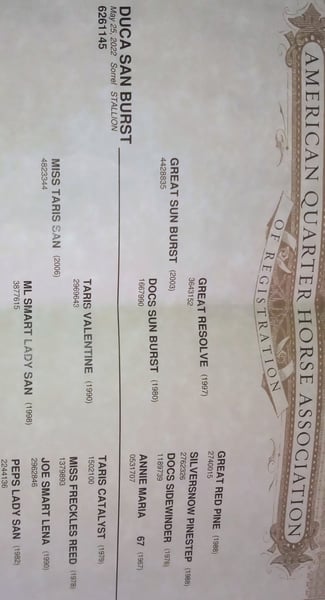 Duca San Burst ( Great Sun Burst out of Miss Taris San). This young gelding (25/05/22) Is in very good health. Has a good caracter and feels confortabile with people. Has had a good training to start western ridings. Excellent geneology. Looking for a new home because we are moving abroad.. contact only with sincere interests. WhatsApp 00393755142780