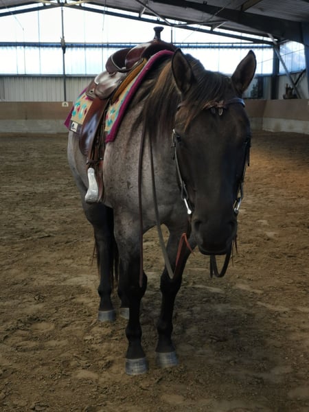 4-jarige Quarter Horse ruin in Grullo Roan te koop. Hij heeft een rustig, onbevangen karakter, is onder het zadel en zeer braaf. Gaat alleen het terrein in. Hij is gewend aan een open stal en is zeer sociaal. Hij loopt zonder ijzers, is regelmatig gevaccineerd en ontwormd en heeft zijn tanden laten doen. Hij heeft een klein schoonheidsfoutje aan het rechteroog, wat geen problemen oplevert. Een paard om van te houden en zelf op te leiden! Helaas ontbreekt het me aan tijd om hem verder te ontwikkelen.