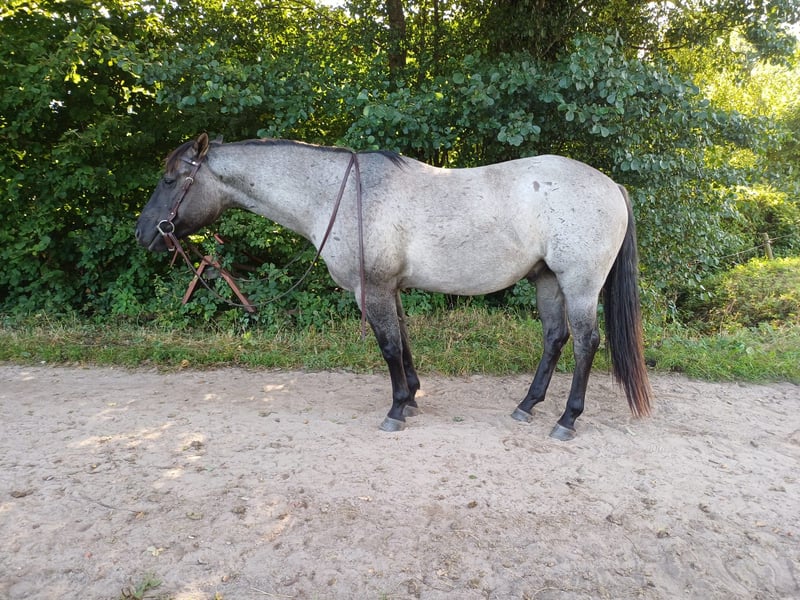4-jähriger Quarter Horse Wallach in Grullo Roan zu verkaufen. Er hat ein ruhiges, unerschrockenes Gemüt, ist angeritten und sehr brav unterm Sattel. Allerdings fehlt ihm noch jegliche Ausbildung unterm Sattel. Geht allein ins Gelände. Er ist Offenstallhaltung gewöhnt und sehr sozialverträglich. Läuft barhuf, wurde regelmäßig geimpft und entwurmt sowie Zähne gemacht. Er hat nach einer Verletzung am rechten Auge einen kleinen Schönheitsfehler, der keine Probleme macht (siehe letzte Bilder). Er ist über die Eltern 5 Panel NN IMM NN MYH1 NN PSSM2 NN Ein Pferd zum Liebhaben und Selbstausbilden! Leider fehlt mir die Zeit, ihn zu fördern.