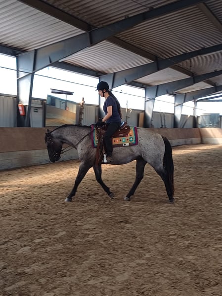 4-year-old Quarter Horse gelding in Grullo Roan for sale. He has a calm, fearless temperament, is backed and very well-behaved under saddle. He goes out alone into the countryside. He is used to being kept in an open stable and is very sociable. He is barefoot, has been regularly vaccinated and dewormed, and had his teeth done. He has a small cosmetic flaw on his right eye, which does not cause any problems. A horse to love and to train yourself! Unfortunately, I do not have the time to further develop him.