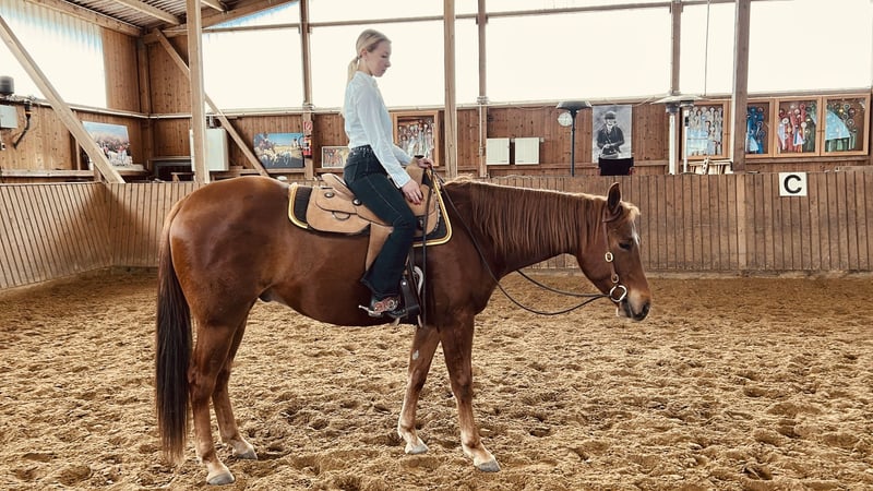 💫A ROCKIN MACHINE💫 Quarter Horse Wallach Geb. 2022 Sire: ROCKIN MY LAZY Dam: PAGE N MACHINE Vegas präsentiert sich unter dem Sattel stets äußerst brav, unerschrocken und zuverlässig – ebenso überzeugt er im täglichen Umgang durch seine ruhige und kooperative Art. Unarten hat er bislang keine gezeigt; vielmehr ist er ein ausgesprochen menschenbezogenes, freundliches Pferd. Die Grundgangarten beherrscht er sicher und ausbalanciert. Damit eignet er sich sowohl für den ambitionierten Sporteinsatz als auch als verlässlicher Partner für den gehobenen Freizeitbereich.