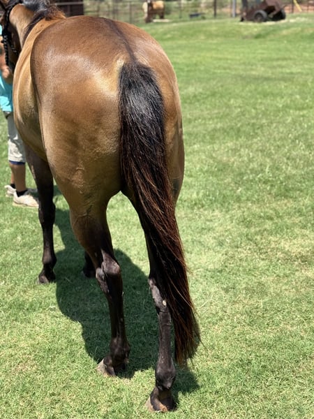 "AVAILABLE ON ONLINE HORSE AUCTION AT www DOT MagicHorseAuction DOT com BIDDING OPEN NOW thru TUESDAY | JULY 8th - BUY IT NOW AVAILABLE! *Final price will be determined on auction site* CONSIGNOR CONTACT INFO: Dustin Jackson 940-631-5245 LOCATION: Henrietta, TX 15.2, 4 year old Bay Gelding by Mechanic - (AQHA WORLD CHAMPION - HIGH POINT PLEASURE STALLION and Top 10 AQHA World Champion Reserve Congress Champion High Point Western Pleasure Stallion in the Nation). In the barn, his name is Tyrone. Tyrone had a late start to his training but is catching up quickly. With only 75 days training, he is showing all the athleticism needed to make an outstanding trail horse and could easily go on with his training and go to the show pen. He has pulled logs and tires around and could be used as a ranch horse. He has the size and the bone to go with it. He is laid back and has a good demeanor. He stands to be tied and picks up all feet. He is super easy to catch and loves a good scratch. He is 100% Sound! This gelding will make someone a great horse in the future. he has a great start to go any direction that you wanted to. Located in Henrietta, TX.
