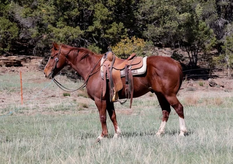 ONLINE AUCTION Place your bids at www.PlatinumEquineAuction.com Starting Bid $3500 Auction ends May 11th, 2025 Need a new saddle? Check out White Rock Saddles on our website or Facebook! Regalo is a grade 4 year old gelding standing 14.1hh. This awesome gelding is the definition of gentle!! Whether you’re 6 years old or 86 years old and can sit in the saddle while holding the reins you’ll be able to ride Regalo and enjoy every second of it! Lope pretty circles or cruise on down the arena, Regalo is just as fun outside on the trail and in the arena! Mosey on through brush, over fallen logs, through flowing rivers, cruising traffic through town, rough country, anything you can think of Regalo will mosey right on through. Regalo is just as gentle and good minded in the arena! He will walk, trot, and lope both ways with ease as well as neck rein and has a good stop. This gelding is absolutely gentle, good minded, kind hearted, and always willing to please! Not a thing phases him!! If you’re looking for your next adventure buddy then look no further, Regalo is your guy! He is easy to catch and good to groom, saddle, bridle, bathe, shoe, and load!! Will come with a clean coggins and health! Located in Camp Verde, AZ. Contact D/C Equine Services Dallas 804-822-2233 with any questions. ONLINE AUCTION Place your bids at www.PlatinumEquineAuction.com Starting Bid $3500 Auction ends May 11th, 2025 Need a new saddle? Check out White Rock Saddles on our website or Facebook!