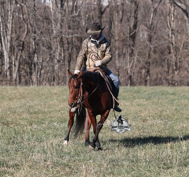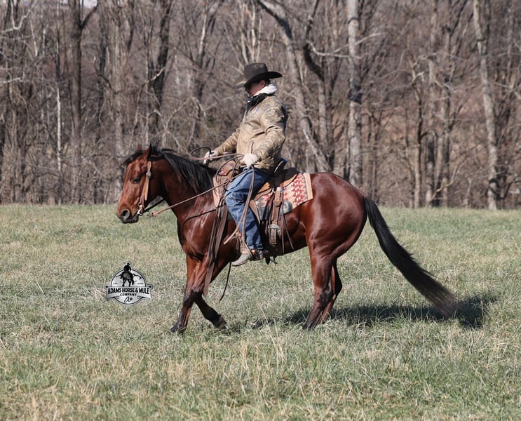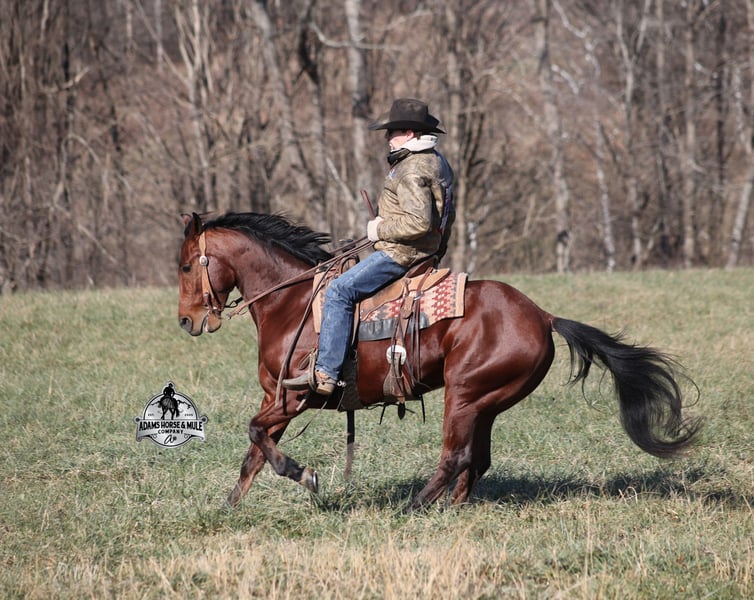 𝐀𝐝𝐚𝐦'𝐬 𝐇𝐨𝐫𝐬𝐞 & 𝐌𝐮𝐥𝐞 𝐂𝐨𝐦𝐩𝐚𝐧𝐲'𝐬 ✷𝑬𝒗𝒆𝒓𝒚 𝑴𝒊𝒍𝒆 𝑨 𝑴𝒆𝒎𝒐𝒓𝒚✷ 𝐄𝐗𝐂𝐋𝐔𝐒𝐈𝐕𝐄 𝐒𝐀𝐋𝐄 Happening now thru MONDAY | FEBRUARY 2nd - Available EXCLUSIVELY on HorseBid's website! For more details and to register visit: www.Horsebid.com CONSIGNOR CONTACT: Adams Horse and Mule Company 606-308-2461 LOCATION: Mt. Vernon, KY BREED: AQHA REGISTERED: Yes REGISTERED NAME: JLS Metallicboonsmal COLOR: Bay HEIGHT: 14.2 AGE: 5 GENDER: Gelding JLS Metallicboonsmal is a beautiful bright bay gelding, standing 14.2h, a 2021 model gelding with an All-Star lineup in his pedigree... Metallic Cat, High Brow Cat, Peptoboonsmal (both sides), CD Olena (both sides) and High Brow Hickory (both sides). If you are looking for a rope horse or real deal ranch horse, Metallic is your guy! He is a horse for all jobs, anything on the ranch from sorting to pasture roping, to trails up in the rugged mountains, put him in the ranch classes or back him in the box and collect a check... he will do it all and do it all- RIGHT! He handles all terrains on the trails, from steep slopes to rough rocky areas! He has penned cattle at the stockyards, worked at the feedlot, loaded trucks, roped and doctored sick ones. Metallic has a smooth jog, takes his leads in a nice slow lope on a draped rein. He is one hand broke, he spins both ways, sidepasses to open/shut gates and backs with ease. He has been exposed to all kinds of wildlife and works well with stock dogs. He is the same horse whether ridden daily or even if he is left off in the pasture. Metallic is one special horse with the mind, pedigree and experience that is highly sought after, don't miss this guy! Call Eric 606-308-2461 with any questions.