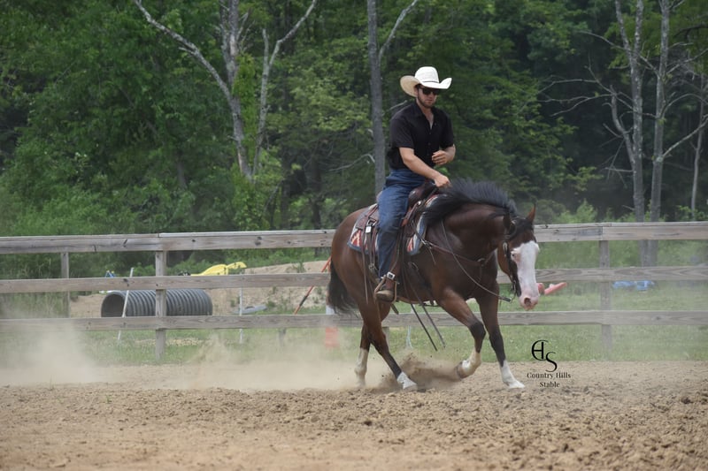 🍂 𝓐𝓾𝓽𝓾𝓶𝓷 𝑨𝑳𝑳 𝑺𝑻𝑨𝑹 𝑳𝑰𝑵𝑬𝑼𝑷 🍂 Happening now thru MONDAY | OCTOBER 6th - Available EXCLUSIVELY on HorseBid's website! For more details and to register visit: www.Horsebid.com CONSIGNOR CONTACT: Country Hills Stable / Eddie Miller 330-365-6443 LOCATION: Baltic OH BREED: AQHA REGISTERED: Yes REGISTERED NAME: Take Out The Gunman COLOR: Bay HEIGHT: 14.3 AGE: 4 GENDER: Gelding Bourbon is a one of a kind, sweet, sweet gelding! He has been a gem to work with and has been a pleasure to have in my program. Bourbon has many miles of trail experience, including several wagon train trips with large groups of horses and was a true gentleman! He is safe in the traffic, on busy roads and riding thru town. He is used to balls, tarps and bull whips. Bourbon has been ridden by beginners and is very trustworthy. He willingly comes up to you in pasture and is happy to greet everyone who enters the barn. Bourbon patiently stands to tack, bathe, clip and shoe. He has been ridden a lot in the arena and moves gracefully thru all gaits, whether in English or Western tack. He will side pass to the mounting block for ease of mounting. Bourbon will neck rein; he jumps, pivots and stops nicely. He has been showed in Ranch riding and brought home some ribbons, so whether you're looking for a horse to pleasure ride on weekends, take him to the show ring or for your kids to tag along, Bourbon will be there for you, and he will look HANDSOME doing it!