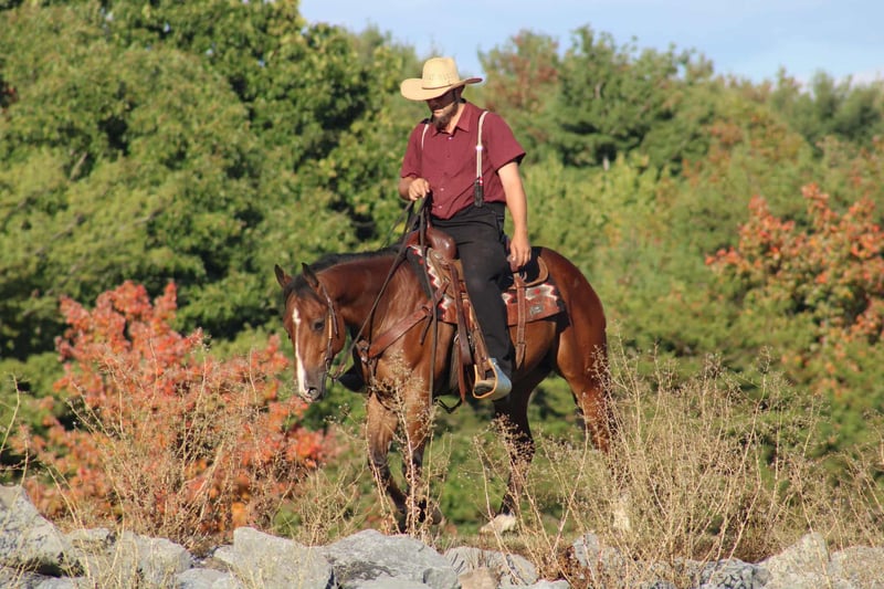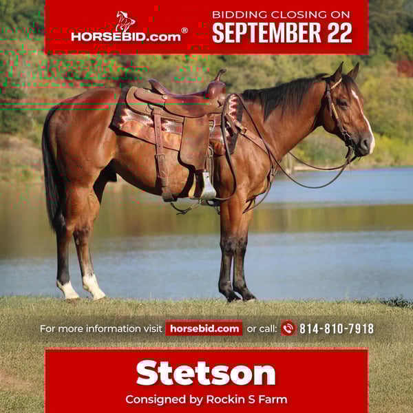 🍁𝒕𝒉𝒆 𝐅𝐀𝐋𝐋 𝑺𝒑𝒆𝒄𝒕𝒂𝒄𝒖𝒍𝒂𝒓🍁 Happening now thru MONDAY | SEPTEMBER 22nd - Available EXCLUSIVELY on HorseBid's website! For more details and to register visit: www.Horsebid.com CONSIGNOR CONTACT: Rockin S Farm 814-810-7918 LOCATION: Rebersburg, PA BREED: Quarter horse REGISTERED: No COLOR: Bay HEIGHT: 14.3 AGE: 4 GENDER: Gelding 🔥🔥Stetson 🔥🔥 Here's a cool dude that is family broke and gentle, he's very well broke to ride and has a good neckrein and a big stop and will also ride bridless , Stetson is soft in the bridle and responds very well to leg cues, the best part about Stetson is his smoothness, he has the smoothest walk-trot-canter you could possibly ask for so if you have back problems and need a Smooth horse be sure to check him out, Stetson is the perfect age of 4 and has the mentality of a much older horse and he's very versatile, we've used him to work cattle and check fences here on the farm and never has a bad day. Stetson is also a seasoned trail horse and has lots of trail experience through the mountains and creeks wherever you point him kinda guy, wildlife and traffic doesn't bother him and we've had him to state parks on trail rides and he was a champ , he loads and trailers with no issues and he will ride out alone or with other horses and it doesn't bother him if he is leading or following, he's the kinda guy that wants to be in your pocket and comes up to you .Stetson is built like an old foundation quarter horse and is built to last, he sells 100% sound and requires no maintenance and has no vices, he is up-to-date on farrier and dental as well as a current Coggins and health certificate We are happy to assist in arranging transportation anywhere in the US, If You have any questions or if you would like to come and meet him please feel free to call Sam 814-810-7918.