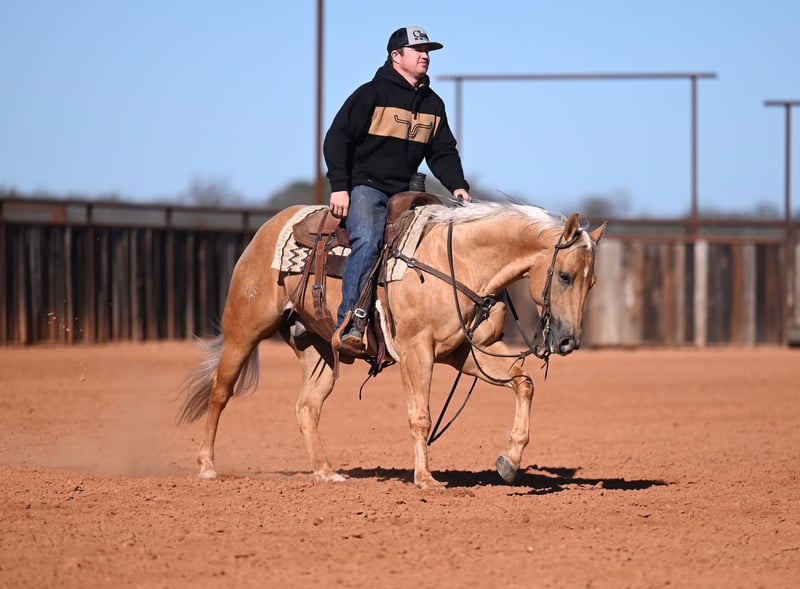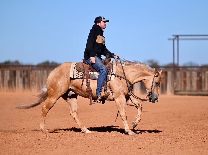 𝐍𝐀𝐓𝐄 𝐁𝐀𝐋𝐋𝐄𝐑𝐈𝐍𝐎 𝐇𝐎𝐑𝐒𝐄 𝐂𝐎'𝐬 ★ ℝ𝕀𝔸𝕋𝔸 𝔹𝕌ℂ𝕂𝕃𝔼 ★ 𝑺𝒉𝒐𝒘𝒄𝒂𝒔𝒆 Happening now thru SATURDAY | FEBRUARY 28th - Available EXCLUSIVELY on HorseBid's website! For more details and to register visit: www.Horsebid.com CONSIGNOR CONTACT: Nate Ballerino Horse Co 254-716-9588 LOCATION: Waco, TX BREED: Quarter Horse REGISTERED: Yes REGISTERED NAME: HSR DUALING METELES COLOR: Palomino HEIGHT: 14.3 AGE: 5 GENDER: Gelding HSR Dualing Meteles LTE $189.00 NRCHA HSR Dualing Meteles aka Lincoln is Gorgeous Gelding by Meteles Cat who won over 437 k and produced in excess of 2 million and out of a money earring and producing Daughter of Dual Rey. Lincoln has been trained and successfully shown in the Cowhorse. Lincoln is a special gelding that shows a lot of natural talent and style. He's incredibly eager to please, stays soft, super trainable and has the heart and athleticism to back it. Lincoln is Currently in Heel Horse training with Clyde Bolejack and has been lighting started on calves. He is showing extreme talent and would excel in the rope horse Events. He takes both leads, has correct spin's and a deep sliding stop. Walks out on a loose rein, has a soft steady trot and a pleasant lope. He is eligible for NCHA Super Stakes, Breeders Invitational, PCCHA Stakes, NRCHA Stallion Stakes, Gold Buckle Futurity, Royal Crown Roping, Riata Buckle, Solo Select Incentives. Please Call Nate at 254-716-9588 with any questions. Nation wide shipping can be arranged.