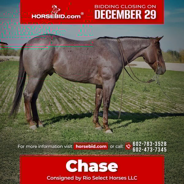 ⚜️𝐓𝐇𝐄 𝓗𝓮𝓻𝓲𝓽𝓪𝓰𝓮 𝐖𝐢𝐧𝐭𝐞𝐫 𝓒𝓵𝓪𝓼𝓼𝓲𝓬⚜️ Happening now thru MONDAY | DECEMBER 29th - Available EXCLUSIVELY on HorseBid's website! For more details and to register visit: www.Horsebid.com CONSIGNOR CONTACT: Rio Select Horses LLC 602-783-3528 or 602-473-7345 LOCATION: Tonopah AZ BREED: AQHA REGISTERED: Yes REGISTERED NAME: BROWNYS ALLSTAR COLOR: Red Roan HEIGHT: 14.3 AGE: 4 GENDER: Gelding 2021 “ BROWNYS ALLSTAR” AQHA Gelding If you’re looking for the "real deal," here he is. Chase is a finished AQHA gelding with a professional reining foundation. He’s spent his life earning his keep, whether it’s under the bright lights of an arena or out doctoring cattle. Chase is broke to death and operates off a whisper. He is a true one-hand horse with "fancy" buttons that are light and responsive. • The Spin: He’ll sit over his hocks and spin a hole in the dirt both ways. • The Stop: He’s got a massive, deep-seated slide stop—he’ll bury his backend and hunt the ground every time you ask. • The Mind: He has a hair-trigger response if you ask for speed, but he’ll drop his head and walk on a draped rein the second you quit him. This isn't just a "pretty" horse; he’s a working partner. Chase has been used for: • Sorting & Cutting: He’s got a natural eye for a cow and holds his ground. • Ranch Chores: He’s been used to doctor and rope out in the open. He knows how to take a joke and stay calm when things get western. • Versatility: He has the miles and the "bottom" to work an all-day shift without quitting. One of the best things about this gelding is his mind. Chase can be taken any direction and is the perfect prospect for whatever you would like him to do. Whether you want to transition him into a high-level breakaway horse, a ranch versatile competitor, or a mounted shooter, he has the foundation and the athletic ability to excel in any discipline you choose. On the trail, Chase is the ultimate insurance policy. He’s been exposed to everything from heavy machinery and barking dogs to rushing water and chaotic environments. • Solid Citizen: He doesn’t have a spook in him. • Independent: He’ll lead the pack or head out solo without getting "buddy sour" or jigging on the way home. • Professional Manners: Stands tied, hauls like a dream, and is a perfect gentleman for the farrier. • Sound & Sane: 100% sound, healthy, and ready to work. • Current: UTD on all vaccinations, Coggins, and dental work. • Loads, unloads, and travels well Whether you want to go win a Ranch Riding prospect class, sort some pairs, or just have the safest, fanciest mount on the trail, Chase is your man. He’s a horse that tries to please his rider every time you swing a leg over him.