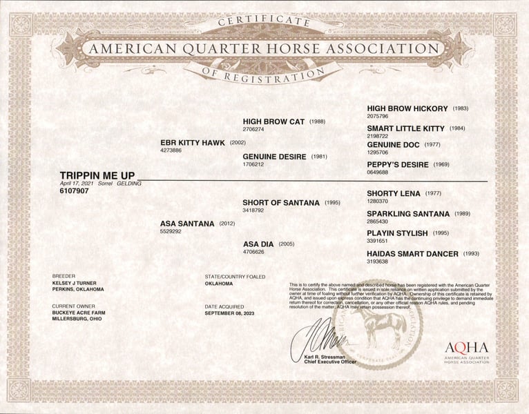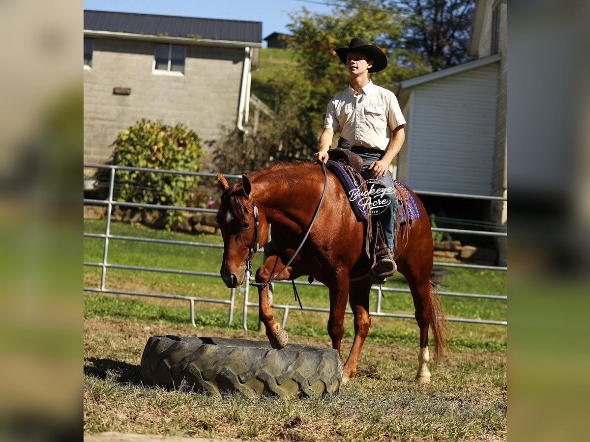 Sierra is the gelding who makes riding effortlessly, fun, and safe for everyone. This 2021 AQHA sorrel gelding standing 15 hands with good conformation, a bright eye, a star and snip on his face, and a white hind sock. With breeding going back to Hall of Fame High Brow Cat, Sierra combines pedigree, talent, and versatility like few others. There is very little this outstanding gelding has not experienced. He has been a trusted ranch-hand, worked cattle, competed in obstacle courses, and been part of countless ranch tasks. Sierra is a true anyone-can-ride horse, perfect for beginners, seniors, and advanced riders alike. He knows his leads, executes smooth lead changes, spins, and can perform sliding stops when asked. Sierra’s gaits and transitions are smooth and effortless—from walk, trot, extended trot, to canter—and he maintains consistency even if he has not ridden every day. He has traveled miles of trails, crossed streams, navigated uphill and downhill terrain, and checked fence lines with confidence. His calm and smart personality makes him a joy to ride in almost any situation. Whether in an indoor or outdoor arena, ridden western, English, bareback, or neck-reined, Sierra adapts like a pro to every rider. Children can enjoy him safely, while adults can trust him for serious ranch or show work. Walk to the barn, and you’ll never get tired of seeing that pretty head, bright eye, star, and snip looking at you, ready to be your equine friend. He has a genuine want-to-please attitude and meets you at the gate every time. Sierra is also very versatile. He has experience in ranch competitions, trail riding, arena work, obstacle courses, and even checking cows along fence lines. He is not only a talented performer but also a dependable partner for any day-to-day ranch or farm work. He does not require constant riding to stay sharp, making him perfect for busy families or riders with multiple horses. Up to date on vaccinations, deworming, and shoeing, Sierra has been Nate’s go-to horse for any job that needs doing. He is a safe, dependable, and incredibly talented gelding who will make a rider of any level feel confident and connected. If you are looking for a horse with talent, brains, heart, and personality, Sierra is the one you have been searching for. For more information or to schedule a visit, call Duane at 330-231-2324.