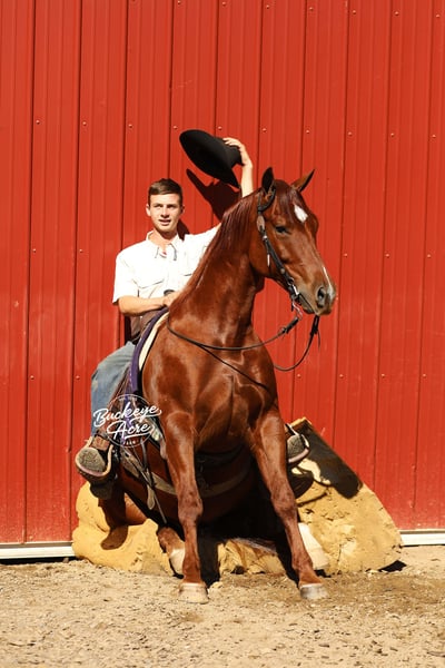 I started my journey in the horse industry in 1995 when I purchased my very first pony at 11 years old. I spent an entire year devoted to training, riding,, and teaching him fun tricks like laying down, sitting, and bowing. I sold him later that year; the feeling of providing a well trained, well behaved, horse was so rewarding that I felt I wanted to continue to share my gift. In 2007, I married my awesome wife Miriam, and we have been blessed with six incredible children (two daughters and four sons) that participate daily with the operation of the farm. What started as myself and a dream has become the full time commitment of my family, and ten employees. The opportunity to share our horsemanship has been so rewarding. In kind, we have been so blessed to learn from professional experts and knowledgeable friends that have voluntarily poured into us their invaluable years of knowledge. Our program has developed, changed, and grown along the way to ensure that we are producing a quality horse that we know we can stand behind. We start by carefully evaluating each horse before purchase. We specialize in quality quarter horses, draft crosses, and also Friesian and Gypsy crosses, from performance to trail riding to leisure. After selection, we take the horse through our groundwork program to get connected with them as individuals. We take them through obstacles and trail ride them, exposing them to anything they may ever encounter. Then, we give the horses a break for up to one month. This allows us to see how the training will stick with them. If they come back in the same place they were before the break we know they are ready to move through the rest of the program and become finished Buckeye Acre Farm horses, learning all of the fun crowd pleasing tricks. We feel we have one of the best soundness guarantees in the business, and we will stand behind that. This has been an awesome journey, and God continues to bless and humble us each and every day. All of us, from our children to our employees, want to provide the best quality horses that you and your families will enjoy for years to come. Over the years we have experienced that the horse market changes, but also that a quality horse is always in high demand. If you see a horse that meets your needs, please reach out to us. I look forward to your call, and to speaking with you personally about your next equine partner. May God bless your day.