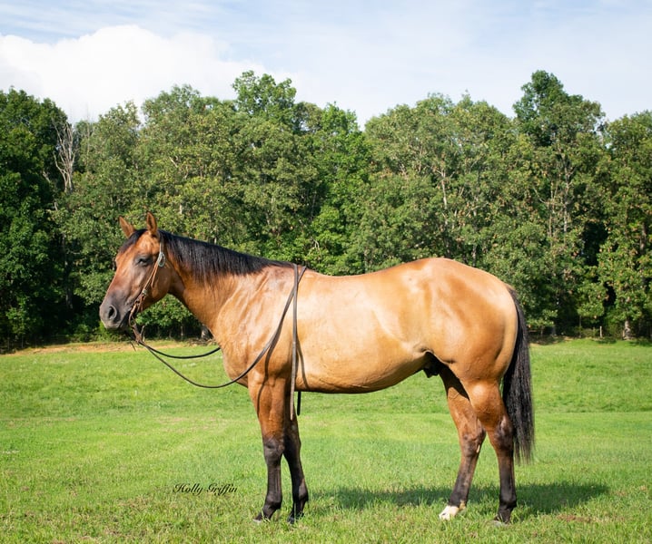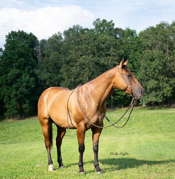 ONLINE AUCTION Place your bids at www.PlatinumEquineAuction.com Starting Bid $3500 Auction ends August 11th, 2024 Need a new saddle? Check out White Rock Saddles on our website or Facebook! Smoke is a 2021 model AQHA Dun Gelding! Smoke stands 15 hands and wide as he is tall! Very good disposition on this gelding and always wants to please! We have had the privilege of owning this gelding most of this year and took him on countless trail rides. He has a very good start for a 3 yr old with lots of outside miles. Very easy keeper in the field or in a stall. He saddles up easy and has never offered to buck or anything silly! Smoke lopes great circles and picks up both leads. He has a very great natural short lope to him. Smoke neck reins and starting to move off leg pressure. Buy this young gelding with confidence he’s ready for his forever home! He has had one set of shoes on but is currently barefoot and sells 100% sound and sane! Located in Greenville Kentucky. Contact Holly Griffin at 618-304-3825. ONLINE AUCTION Place your bids at www.PlatinumEquineAuction.com Starting Bid $3500 Auction ends August 11th, 2024 Need a new saddle? Check out White Rock Saddles on our website or Facebook!