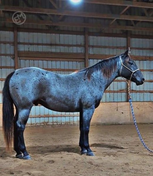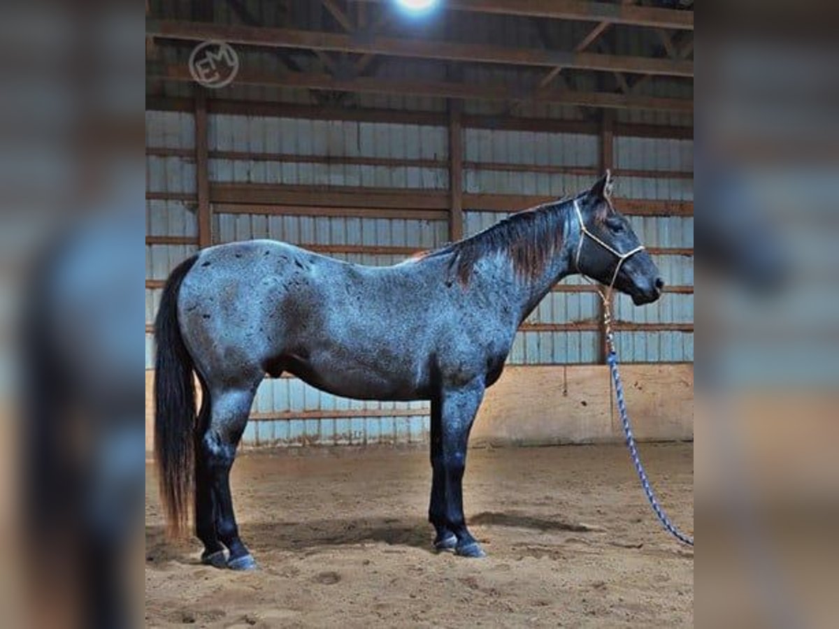 Registered Quarter horse. 5 years old. Beautiful steel-gray Blue roan gelding with a sleek, eye-catching coat that turns heads in any arena. He has a refined head, long clean neck, and a well-balanced athletic build with strong shoulders and solid hindquarters. Dark legs, mane, and tail give him a sharp, polished look, and his subtle dapples add extra character. Calm, attentive, and easy to handle. Stands quietly, leads well, and had training for 90 days. Ready to go any direction. Sound with good overall condition and a smooth, even stance. A handsome, versatile horse with both presence and potential, suitable for a rider looking for a dependable partner or a standout addition to the barn.