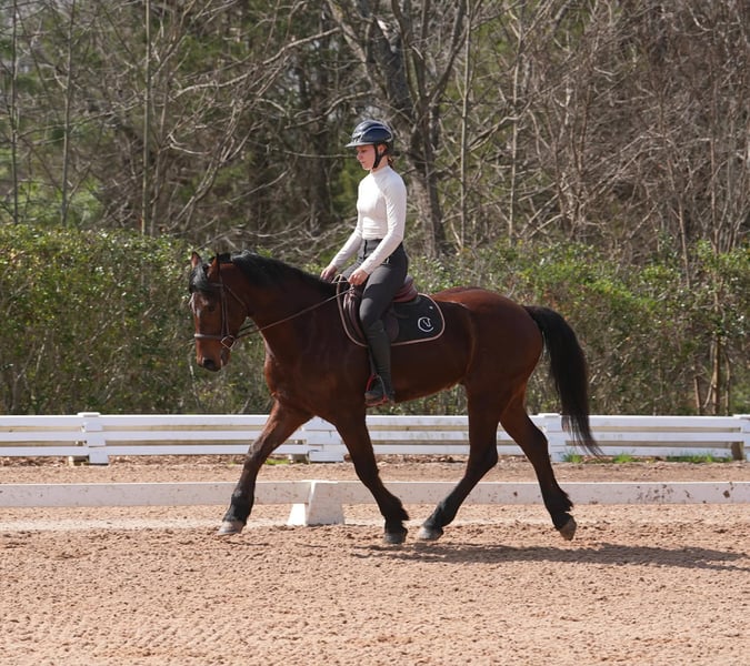 ⚜️𝓽𝓱𝓮 𝐆𝐎𝐋𝐃 𝓢𝓮𝓵𝓮𝓬𝓽⚜️ Happening now thru MONDAY | MARCH 23rd - Available EXCLUSIVELY on HorseBid's website! For more details and to register visit: www.Horsebid.com CONSIGNOR CONTACT: Carolina Sport Horses 704-249-8500 LOCATION: Clover, SC BREED: Quarter Horse x Morgan REGISTERED: No COLOR: Bay HEIGHT: 15.1 AGE: 5 GENDER: Gelding 🐴 HEATH – Stunning to Look At. Steady to Ride. Heath is a 5-year-old Draft cross with a deep bay coat that stops people in their tracks. He has the kind of presence that turns heads — substantial, athletic, and beautifully put together. But what makes Heath special isn’t just how he looks. It’s how safe he feels. And if you’ve been around horses long enough, you know that beauty without a good mind doesn’t mean much. Especially when you’re not 25 anymore. Especially if you’ve had one that shook your confidence. Especially if you’re buying for your family. The fears are always the same: What if he’s too young? What if he gets strong? What if he spooks? What if I don’t have the brakes when I need them? Heath quiets those questions. Though only five, he carries himself with maturity and steadiness beyond his years. He does not rush. He does not overreact. He gives his rider time to think. He stands quietly to mount. He walks off relaxed. He transitions smoothly. He listens. And when we say he is calm — we mean it. He may very well be one of the safest horses we have offered in years. He is comfortable fox hunting, happy to step into the show ring, and steady enough to be a family horse for children. That kind of versatility only comes from the right mind — not just training. He even knows fun, crowd-pleasing tricks like laying down — but he never feels silly or unpredictable. Everything he does is deliberate and controlled. For parents who worry about safety… For riders rebuilding confidence… For families wanting one horse everyone can enjoy… Heath offers something that cannot be overstated: Consistency. He rides the same day after day. He handles new environments with composure. He does not escalate energy when others do. He is not here to test you. He is here to take care of you. For the rider who wants stunning looks without stress… Athletic ability without anxiety… And a partner the entire family can trust… Heath delivers something more valuable than flash. He delivers peace of mind. *All horses at CSH enjoy 24/7 turnout with a mixed herd when not in training. Training weeks they spend 3 days inside for work and 3 days off to relax. We do not feed grain but the horses to have 24/7 access to premium western alfalfa. All horses are up to date with vaccinations and worming. They are all on a 6 week farrier rotation as well and some are shod due to our rocky trails. We only train in a loose ring snaffle in western tack and a loose ring, French link or full cheek snaffle in English. Feel free to call or text me with any questions about horse care or training.* *All of our descriptions are OUR OPINION and ARE NOT FACTS. They represent how the horse responded and behaved while in our care. Horses can change at any time as they are living, breathing animals. There are no warranties expressed or implied via the descriptions above*PLEASE READ OUR BUYERS GUIDE PRIOR TO BUYING OR BIDDING ON ANY HORSE WE HAVE AVAILABLE. Interested in bringing home? Give us a call today! Please take the time to read our Buyers Guide to answer any questions or concerns you may have. Contact Us Call or TEXT 704.249.8500