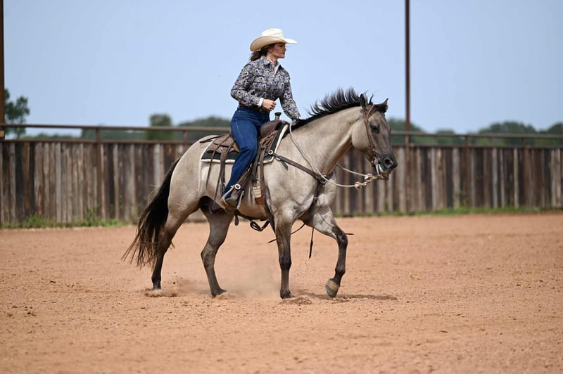 🍁𝒕𝒉𝒆 𝐅𝐀𝐋𝐋 𝑺𝒑𝒆𝒄𝒕𝒂𝒄𝒖𝒍𝒂𝒓🍁 Happening now thru MONDAY | SEPTEMBER 22nd - Available EXCLUSIVELY on HorseBid's website! For more details and to register visit: www.Horsebid.com CONSIGNOR CONTACT: Jordan Brown 502-565-6621 LOCATION: Waco Texas BREED: Quarter Horse REGISTERED: No REGISTERED NAME: Kronk COLOR: Grulla HEIGHT: 15.1 AGE: 4 GENDER: Gelding Affectionately known as “Kronk” a head-turning 15.1 grade grulla gelding. This kind and gentle guy is the poster child for the word versatile! Whether you want an all around family horse or to go show in the ranch riding, team rope on him, jump him or take him to the dressage ring he is skilled and polished in it all! No stranger to work, we have used Kronk extensively on the ranch gathering and sorting cattle, checking fences, and various outside chores. He is our go-to for timid, unsure, or green riders and he truly enjoys taking care of his passengers and calibrates to the ability of each person aboard. This guy prefers a slow, steady gait and easing around but will pick up and move out when asked. Easily the most enjoyable horse in the barn to ride with his gentle trot and soft lope as well as his smooth handle and consistent gaits. Smooth lead departures, a clean change, pretty turns, collects and extends beautifully, and of course a great stop! Moves off leg, super soft in the bridle, and as user-friendly as they make them. Has schooled stadium and cross country and progressing steadily in the dressage ring. Has roped both ends outside and going well in the arena on the head side. Has all the fundamentals and the correct foundation to be your next switch-ender! Fancy in any saddle, in any arena! Meets you at the gate each day and loves nothing more than scratches and a good bubble bath. Gets along in any herd dynamic and also enjoys being stalled. Stays gentle with time off and is the same horse every time. No history of lameness or previous injuries. If you’re looking for a steady, kind horse that will fit the whole family, this is your boy!