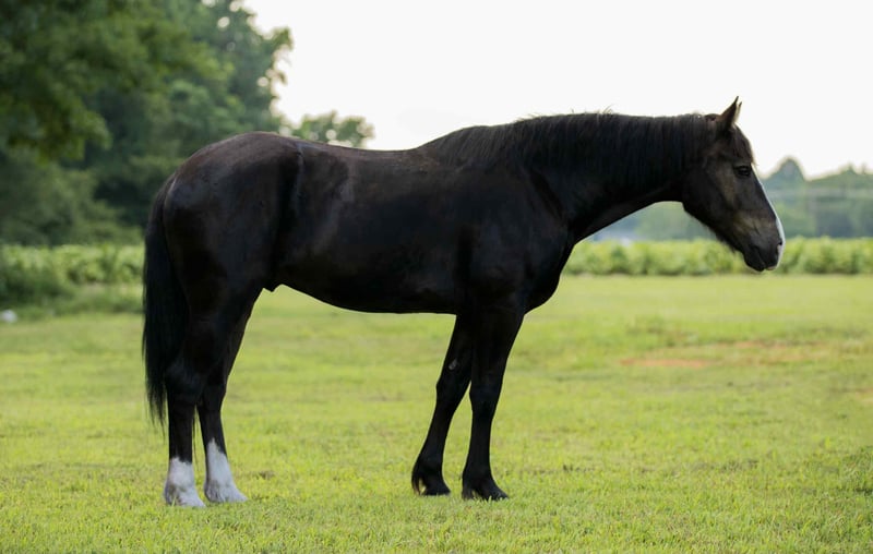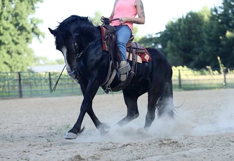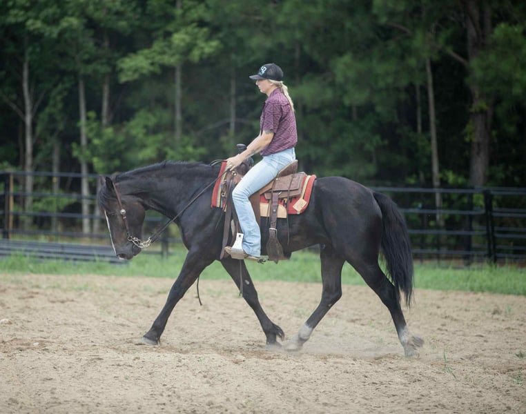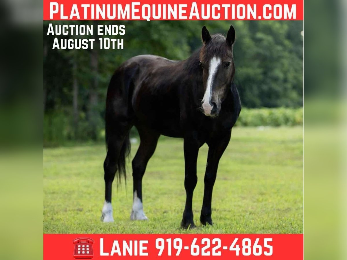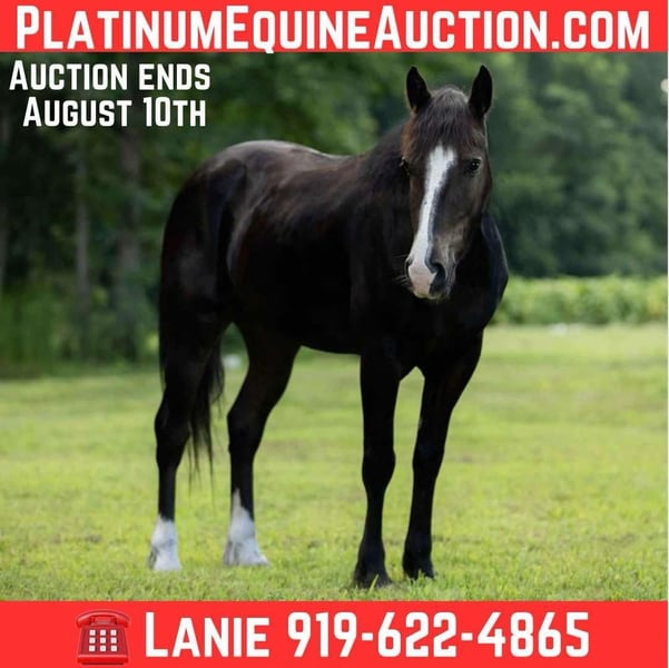 ONLINE AUCTION Place your bids at www.PlatinumEquineAuction.com Starting Bid $3500 Auction ends August 10th, 2025 Need a new saddle? Check out White Rock Saddles on our website or Facebook Joker is a stunning, 4yr old 15.1hh Black Draft X Gelding. He is built thick and correct with a sweet sensible demeanor. He has all the makings to be someone’s next top notch partner whether it’s dressage, ranching, trail riding, hunter/jumpers, etc. He has been started slow and correct and shows so much potential. He rides out confidently alone in the arena or outside of the arena. As well as riding quietly in a group whether he’s front, center or behind the pack. He’s a versatile prospect who handles with ease two handed or one handed. He trots and lopes around with cadence, Has big floaty movements to him. Collects, stops deep, backs, pick up both leads etc. Neck reins and direct reins. He is a forward thinking mover but is extremely respectful of his rider and will collect right down to whatevers asked of him. This guy has a HECK of an extended trot and has been very lightly introduced to lead changes. He has trotted a barrel pattern once. He rides English and western and has jumped a handful of times. Extremely easy going on the trails and crosses logs, ditches, roads with no hesitation. Hauls off of the farm and stays the same. I have used him to work and doctor the cows on the farm. He has had a rope swing off of him a handful of times. He can be left out in the pasture for several weeks and remain the same. He has ZERO funny business to him. He is an absolute pleasure to have around the farm and not something you come across everyday. He stands tied, tacks, bridles, bathes, stands for farrier/ vet quietly with no fuss. Pastures alone or in a group. He is sweet and personable to top off his gentle mind and demeanor. Great around small children and will let your children climb up your saddle to ride with you. He is ready to go out and make someone a very special versatile horse. Finish him in the direction you choose! UTD on all of his routine vet work and coggins. Sells with a Clean PPE just recently performed. X rays are welcome at buyers expense! Located in Wendell NC. Please call Lanie with LS Performance Horses 919- 622-4865 to set up an appointment to come meet him or discuss more about him! Some new videos of him riding English, jumping and doing some other fun things will be added soon! ONLINE AUCTION Place your bids at www.PlatinumEquineAuction.com Starting Bid $3500 Auction ends August 10th, 2025 Need a new saddle? Check out White Rock Saddles on our website or Facebook