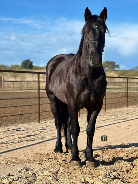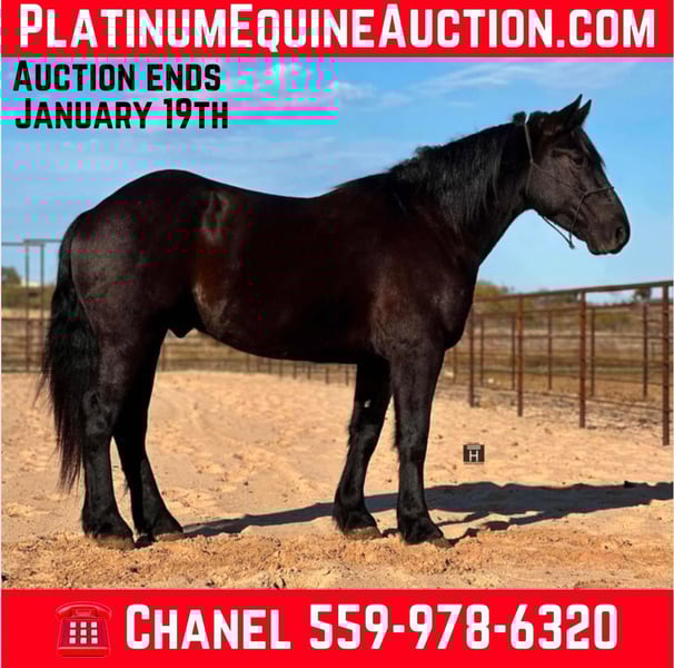 ONLINE AUCTION Place your bids at www.PlatinumEquineAuction.com Starting Bid $3500 Auction ends January 19th, 2025 Need a new saddle? Check out White Rock Saddles on our website or Facebook! Monster is a 4 year old draft cross gelding standing 15.3 hands. He is a seasoned veteran outside, on the trails, on the ranch and down the roads. He rides English and is a super fancy mover! Monster also drives and has been used to pull a cart and farm equipment. We’ve exposed him to everything we can think of and he takes to it all easily. He’s seen the obstacles, rough terrain, freeways, bouncing balls, indoor arenas, outdoor arenas, banners, etc. There isn’t much Monster hasn’t seen. He is very broke and will collect up, neck rein, move off leg and has pretty circles. He is gentle, quiet, very easy to ride and doesn’t need to be rode every day to stay that way. He is safe and sound. I cannot say enough good things about this gelding. He is a favorite of mine. He has excellent ground manners and is a gentleman all the way around. FMI call/text Chanel at Holland Horse Company 559-978-6320. We can help arrange shipping nationwide. ONLINE AUCTION Place your bids at www.PlatinumEquineAuction.com Starting Bid $3500 Auction ends January 19th, 2025 Need a new saddle? Check out White Rock Saddles on our website or Facebook!