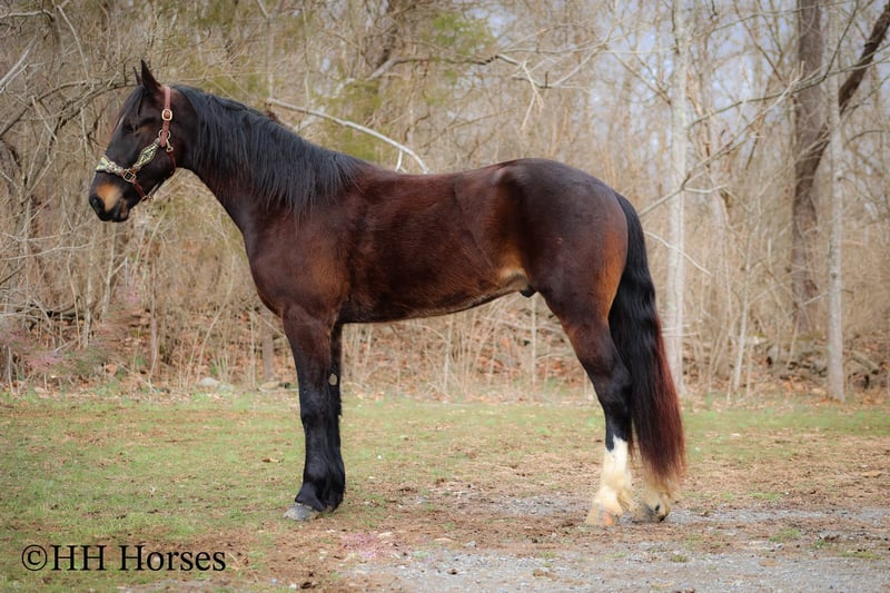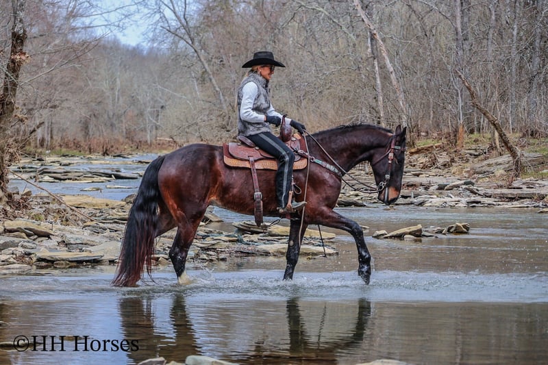 ONLINE AUCTION Place your bids at www.PlatinumEquineAuction.com Starting Bid $3500 Auction ends March 23rd, 2025 Need a new saddle? Check out White Rock Saddles on our website or Facebook! This is “MOONSHINE”, a real stylish, extra fancy moving BAY FRIESIAN QUARTER HORSE CROSSBRED gelding that is broke to ride and drive. This handsome guy stands 16 hands tall and is well proportioned with lots of eye appeal. He is 4 years old. He is versatile and has been ridden English and Western. He has been working in the stockyards to pen back cattle and he has been out on the trails. He is a super pleasant natured horse with lots of ride and a very floaty way of moving. He is talented, well trained, smart, and athletic. This gelding will cross water, he is traffic safe, and he will travel through rocky terrain without any hesitation. He will lope nice circles, catch his leads, stop easy, and back up. He stands to harness, hitch, tack, mount, and groom. He is quiet natured to be around and enjoys attention. This gelding has lots of class, ability, and sense. Located in Flemingsburg, KY. For more info or to make a Buy It Now Offer contact HH Horses Erin 304-238-4155 ONLINE AUCTION Place your bids at www.PlatinumEquineAuction.com Starting Bid $3500 Auction ends March 23rd, 2025 Need a new saddle? Check out White Rock Saddles on our website or Facebook!