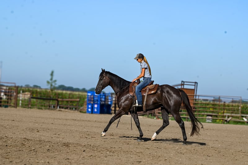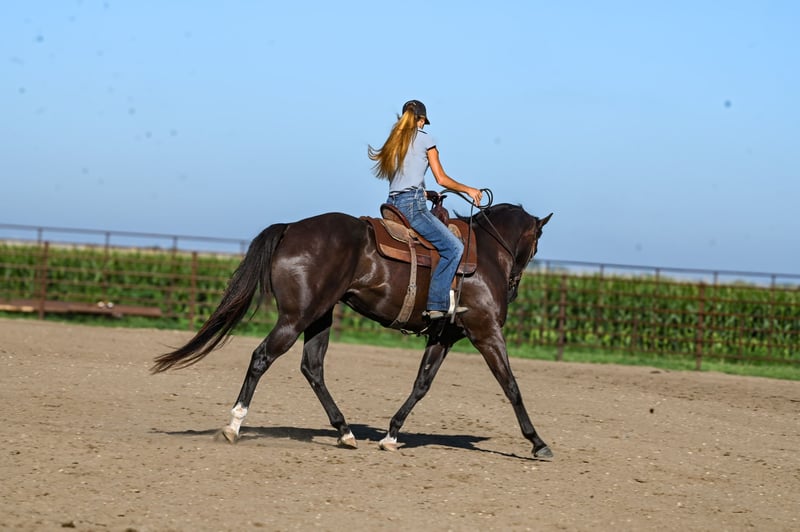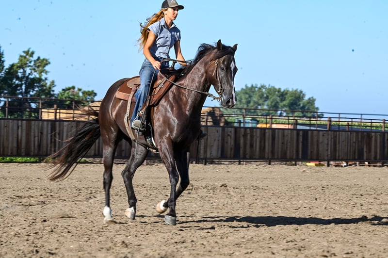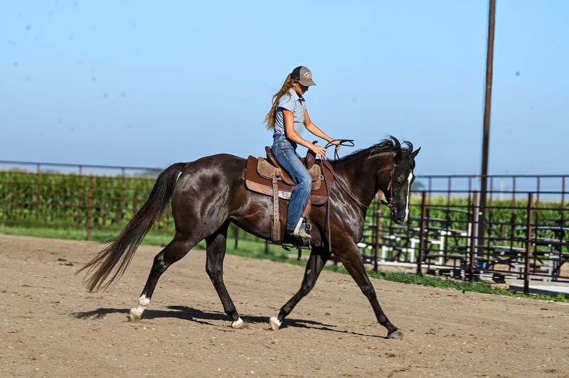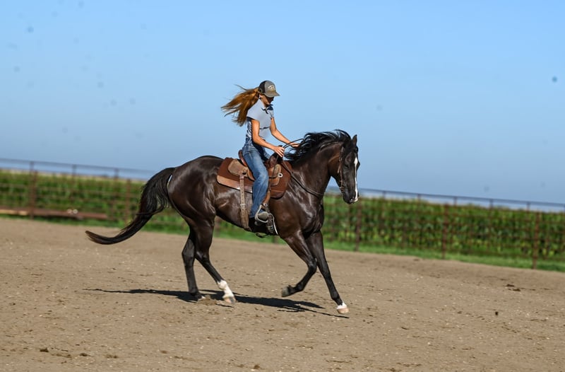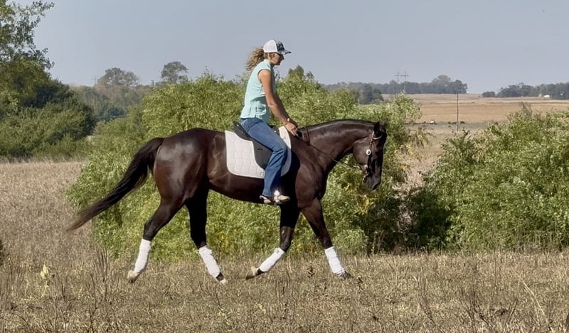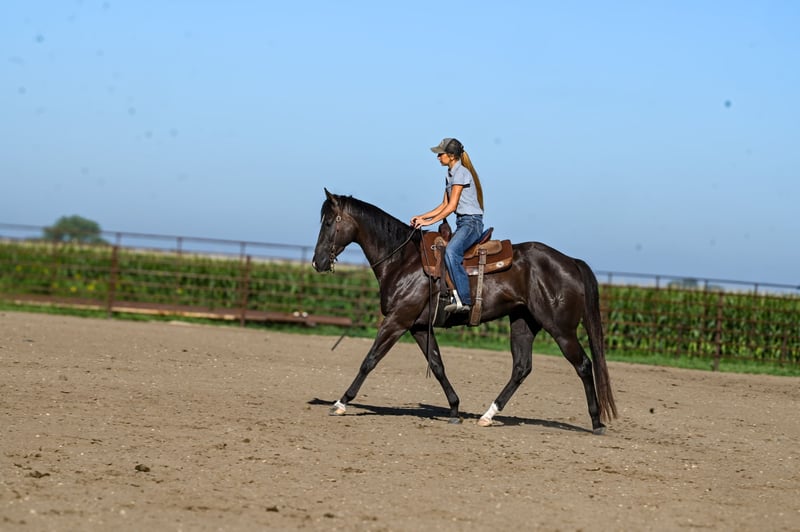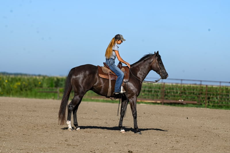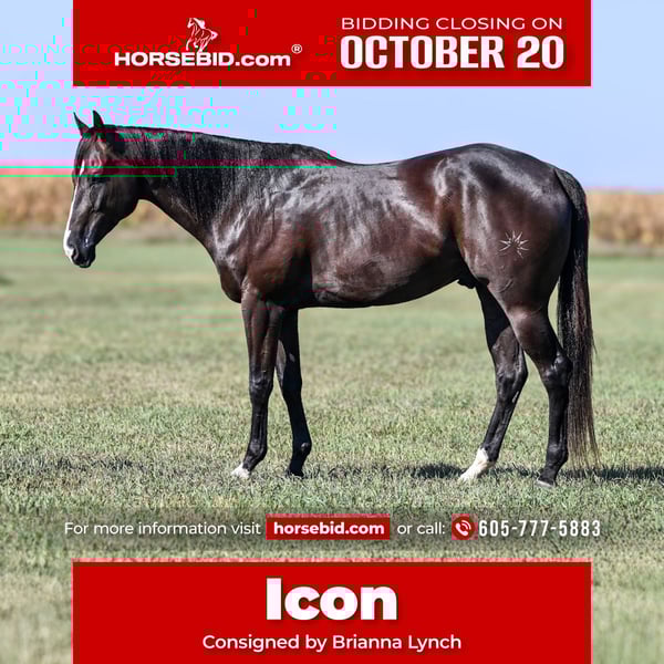 ♦️ 𝐭𝐡𝐞 𝐀𝐌𝐄𝐑𝐈𝐂𝐀𝐍 𝓕𝓪𝓵𝓵 𝓒𝓵𝓪𝓼𝓼𝓲𝓬 ♦️ Happening now thru MONDAY | OCTOBER 20th - Available EXCLUSIVELY on HorseBid's website! For more details and to register visit: www.Horsebid.com CONSIGNOR CONTACT: Brianna Lynch 605-777-5883 LOCATION: Canistota, SD BREED: AQHA REGISTERED: Yes REGISTERED NAME: Tequila Gooberlips COLOR: BLACK HEIGHT: 16 AGE: 4 GENDER: Gelding This one is tall, dark, and handsome! “Icon" has been around our place since the beginning of his three-year-old year and we purchased him straight from his breeder. Bri spent all last year getting him fancy broke, exposing him to the ranch life, and started on the barrels. This gelding is very sweet on the ground and gentle to be around! Icon’s blood is infused with talent and run. He is an own son of NFR qualifier and money earner: KR Famous Tequila who won over $100,000. He was a Canadian Finals qualifier and money earner and AQHA world show bronze place winner. KR is by #1 all barrel horse sire: Dash Ta Fame. Dash Ta Fame is a $39 million sire! KR is out of a daughter of the legendary Chicks Beduino. Icon’s dam is an own daughter of $24 million sire: Ivory James. Icon is very broke in the arena- he will ride in the bridle, move his body parts, counter-arc, and drag his butt. He is broke when you pick him up and ask him to move over, make a turn, or pull him in the ground. Icon can seriously stop- he leaves 11s in the ground ALL the time. He is very responsive with hand and leg cues. Icon has been used to sort cattle and help break roping steers in on the heel side (leaving the box and pushing the steer up the rope). He will absolutely cow up to a steer. Icon loves to trail ride! Ride him out alone with no fuss and take him for a swim! This guy loves the water! We have even ridden him under English tack and man does he wear it well! This guy is a beautiful mover!! He absolutely floats across the ground Needless to say, this guy has had a great, well-rounded foundation. Icon has gotten very solid on the barrels. Spent a lot of time on slow and correct with this guy. For being a running bred horse, he is always ready to turn! That being said, he also has a LOT of run to him. This guy can FLY. He has a really cool feel around a barrel and tries hard. Icon will be ready to enter in no time. Icon is 16 hh, coal black, and 100% sound. Vet checks are welcome at buyers’ expense. Feel free to come try him out! We are located by Sioux Falls, SD. We can help arrange shipping worldwide. Don't miss out on this unique gelding!!