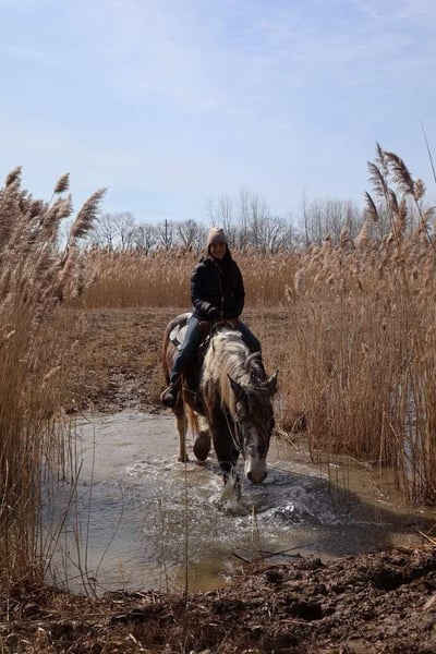 ONLINE AUCTION Place your bids at www.PlatinumEquineAuction.com Starting Bid $3500 Auction ends May 25th, 2025 Need a new saddle? Check out White Rock Saddles on our website or Facebook! Meet Blackstone’s Big John! John is a 17.1hh uniquely colored rose grey and white painted Drum horse gelding. (Percheron, Spotted draft, Gypsy Vanner X) He is as gentle as a lamb. His mane and tail are very thick and natural wavey and he has beautiful feathering on all 4 legs. John is 4 years old. He’s big, he’s pretty, and best of all he’s quiet! John has a beautiful typey face and a kind and expressive eye. He’s the type of horse who wants to be your friend. John is so much like an over grown puppy dog he will follow you all over the pasture and even come trotting up when called. He truly is a best friend type of horse! Anyone can groom lead and handle him on the ground. He is also very easy to catch outside and plays well with other horses. John is nice and quiet under saddle. He works quietly in all gaits with his ears up while being relaxed and happy. He walk trot canters knows his leads and moves on and off your seat and leg. He is alert but shows calm and capable confidence in everything you ask of him! He has extensive trail miles and will go any direction you point him. He’s been down the roads and swam with the kayak’s. John also has some light mileage over fences and he’s bold and brave to any obstacle inside or out. You do not have to have a good eye to get this boy around!! He’s not reactive to new fences facilities or various types of fill. He has been ridden up and down the back roads of Michigan’s beautiful hunt country and would excel in fox hunting. Overall John is a laid back ride but he will move thru the paces off of your voice. He has been hauled to various parks and schooling shows and is very level headed in new places! John is also broke to drive and will work happily in a team or alone. He’s an all around boy that’s got a unique look and is a true a joy to have in the barn. Serious inquiry’s and a loving home only! Big John is located in Howell, MI 48855 give Ellesse Schwartz a call or text 248-390-6831 for more information. ONLINE AUCTION Place your bids at www.PlatinumEquineAuction.com Starting Bid $3500 Auction ends May 25th, 2025 Need a new saddle? Check out White Rock Saddles on our website or Facebook!