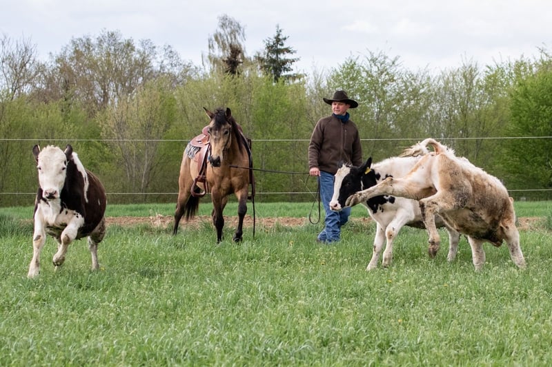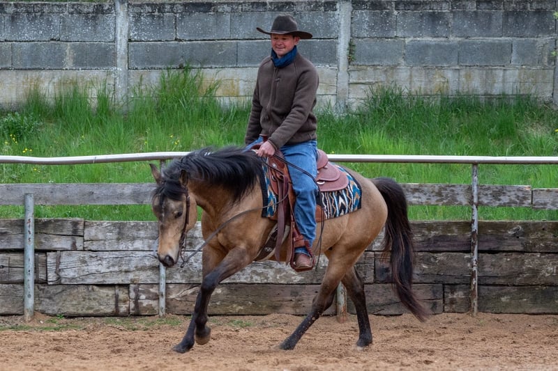 Na sprzedaż wystawiamy naszego wyrazistego i bardzo łagodnego 4-letniego ogiera Quarter Horse „Charlie” w przepięknym, marzycielskim kolorze buckskin. Charlie jest jednym z ostatnich potomków As Smart As Charley – linii znanej z atletyczności, odporności nerwowej i jakości w reiningu. Jego matka to odnosząca sukcesy wnuczka Smart Chicolena, co dopełnia jego rodowód sprawdzonymi genami pracy na bydle i cowhorse. Charlie dorasta w dużej stadzie, jest wychowywany w sposób naturalny i solidny. Został rozpoczęty w treningu późno i delikatnie, dzięki czemu jest fizycznie i mentalnie zdrowy. Już jest wszechstronnie wytrenowany i chętnie myśli samodzielnie: pewnie na placu i w hali, spokojny w terenie, chętnie wychodzi na przejażdżki, utalentowany w pracy na bydle, wykazuje prawdziwy cow sense, uważny, chętny do nauki i zmotywowany. Zawsze imponuje nam swoim przyjaznym, towarzyskim usposobieniem, dużym zaangażowaniem i delikatnym umysłem. To koń, który chce przypaść do gustu swojemu człowiekowi i ma potencjał, by z dalszym wsparciem osiągnąć wielkość. Charlie posiada pełną dokumentację AQHA oraz paszport DQHA. Prosimy o zapytania TYLKO telefonicznie pod numer 0172/9084423. Maile nie będą odpisywane.