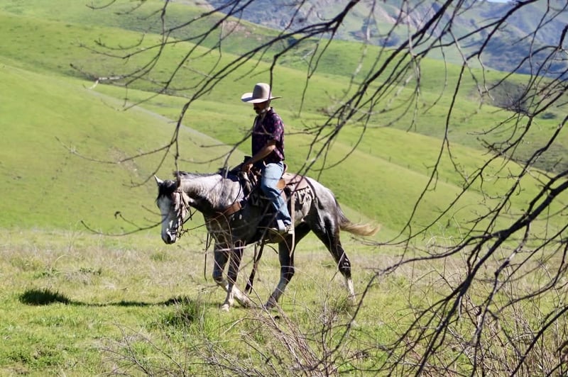"AVAILABLE ON ONLINE HORSE AUCTION AT www DOT PlatinumEquineAuction DOT com BIDDING OPEN NOW thru SUNDAY | FEBRUARY 22ND! *Final price will be determined on auction site* CONSIGNOR CONTACT INFO: Longhorn Ranch 831-537-1915 LOCATION: Paicines, CA Booties Grey Gelding • 5 Years Old 14.3 hands If you appreciate a young horse with a big heart, a great mind, and a foundation that’s already heading in the right direction, Booties is one you’ll want to meet. This classy grey gelding with four white socks is the kind that makes you smile every time you ride him. He is extremely friendly, people-oriented, and a true pleasure to be around both in and out of the saddle. Booties has a solid start and works off a correct, uncomplicated foundation. He walks, trots, and lopes willingly, stays relaxed, and travels in nice, balanced circles. He carries himself with confidence and composure and feels more like a seasoned horse than one his age. Out on the trail, Booties is quiet, steady, and sensible. He goes along handling new surroundings with ease. He has been exposed to obstacles, flags, and tarps, and approaches everything with a calm, willing attitude. Nothing seems to worry this gelding — no buck, no bolt, and absolutely no silliness. Booties has been used to gather cattle and shows a lot of interest in them. We have roped the sled on him, and he is taking to it nicely, showing good try and a great attitude about his work. What truly sets Booties apart is his mind. He is level-headed, honest, and always tries to do the right thing. We feel he is gentle enough for beginners and would make a great youth horse with his willing, people-pleasing attitude, while seasoned riders will enjoy him just as much. Booties is such a pleasure to be around and ride, and truly feels like a special one in the making. Whether you’re looking for a solid trail partner, a nice arena horse, or a young horse to continue developing, Booties checks all the right boxes. Longhorn Ranch Paicines, California Dina – 831-537-1915 Shipping assistance available nationwide.