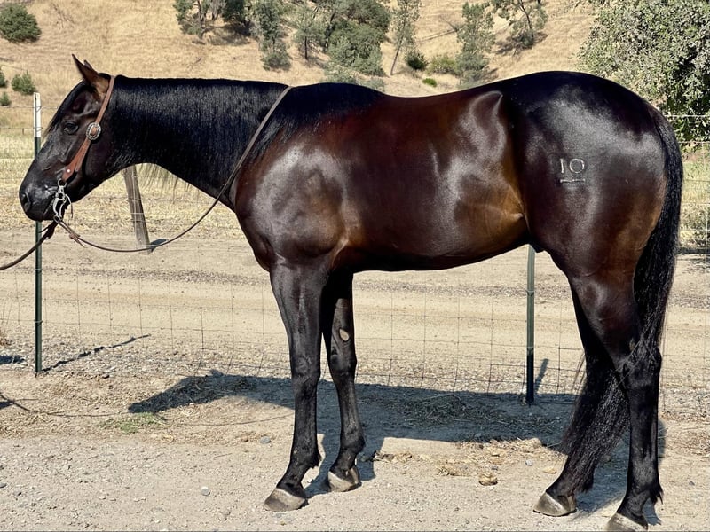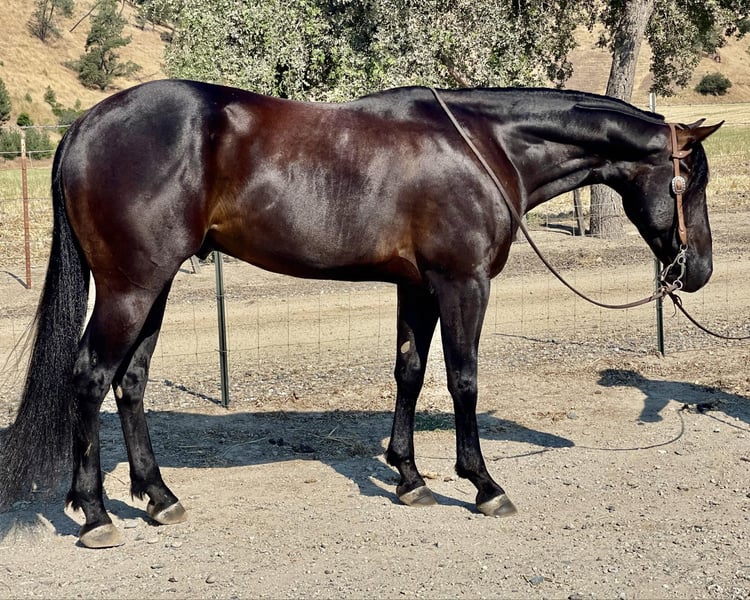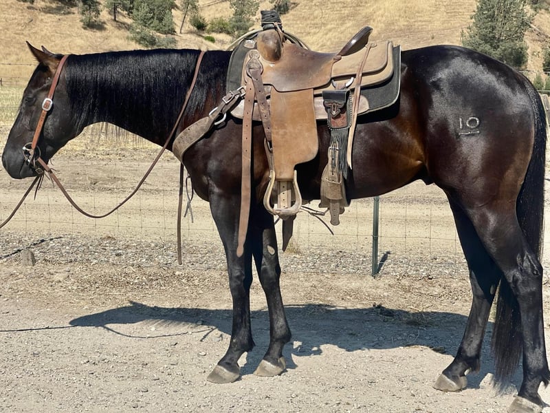 ONLINE AUCTION Place your bids at www.PlatinumEquineAuction.com Starting Bid $3500 Auction ends July 7th, 2024 Need a new saddle? Check out White Rock Saddles on our website or Facebook! Rc Poco Royal King Your dream horse awaits! Zoro AQHA 2021 is a show stopper black gelding currently standing 14.3. He is sired by the great Kelly’s Blue King AQHA – NFQHA blue roan 90 percent foundation bred stallion who goes back to the great Poco Bueno known for their great minds and athletic ability and are extremely versatile and he has clearly passed it down to Zoro. I have to say at my age there are not many young horses I trust and I trust this horse whole heartedly. He is gentle and has no spook to him at all he’s amazingly calm and easy going. He has been started correct with natural horsemanship method. He rides with a nice low headset and uses his body correctly. He lopes beautiful circles and is crossing over nicely in his turn around. He responds to leg cues and will arch and counter arch with the slightest touch. This boy is extremely gentle for his age and takes everything asked of him in stride. He has been used to gather cattle all winter and even branded a few calves and has done everything he’s been asked. He is sure footed and easy to handle will go out alone or with others and doesn’t mind riding off and leaving the herd. He is cowey and confident crosses water, logs and has seen tons of wildlife. We have desensitized him to the ball, tarp and flag and he will not bat an eye at any of it. Zoro has been around some trail obstacles and does great with new things. He has been to town and isn’t bothered by cars or loud noises. He is very willing and adaptable with the most amazing mind and temperament. He ties,clips and bathes is great for the farrier and vet. This boy has an amazing future and could go in any direction great trail partner, extreme ranch obstacle, ranch, rope, or performance horse the possibilities are absolute endless. He has handled time off great and acts like he never missed a day off he has no bad habits and is super easy to be around, handle and ride he is extremely gentle acts like a horse well beyond his years. This boy Will absolutely make everyone notice him with his beauty and style. He will be the Apple of you’re eye and barn favorite. If you would like to come take Zoro for a spin or have any question contact Longhorn Ranch call Dina 831-537-1915 Located in Paicines, CA. ONLINE AUCTION Place your bids at www.PlatinumEquineAuction.com Starting Bid $3500 Auction ends July 7th, 2024 Need a new saddle? Check out White Rock Saddles on our website or Facebook!