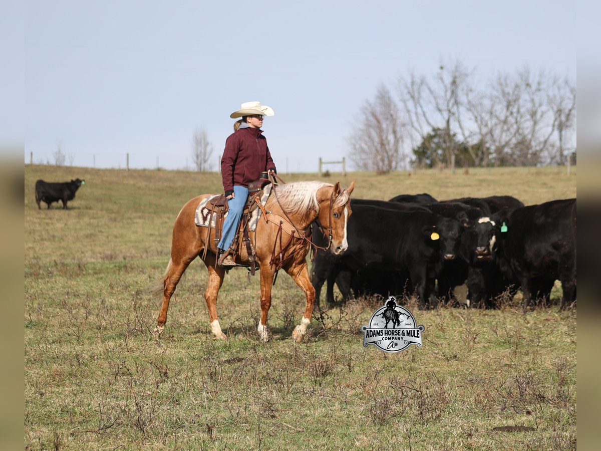 He is consigned to the COWGIRL CADILLACS Sale in Wickenburg, AZ on February 20-21st. You can bid online or bid in person. There is a preview day before the sale or you can come ride him prior to the sale in Mt. Vernon, KY. Register to bid at www.CowgirlCadillacs.com More info at www.AdamsHorseAndMuleCo.com $10000 starting bid CHEX this guy out!!! Gunners Whimpy Chex is a 2021 model reg AQHA, gelding that is standing 15.1hh with a very stocky build. Gunner has something to offer everyone… if you want pretty, he is wearing a golden coat, has a heart of gold and has four white socks with a thin blaze to go along with it, making a perfect combination of chrome and class. If you are a pedigree person… Gunner has an all-star lineup in his family tree, ML Gunnerito who is sired by the legendary Pale Face Dunnit, Hollywood Dun It, Colonels Smoking Gun, Gallo Del Cielo (AKA Rooster) and Nu Check To Cash… and he only gets more impressive once you get in the saddle! To start with Gunner is trained to lay down on cue. He knows all the reining maneuvers and would be a great horse to put in the ranch shows! He lopes nice circles, slowly on a draped rein, has a great stop, spins both ways, side passes to open/shut gates and has a good reverse. Gunner has a great mind, he is very laid back and loves attention. He enjoys being pampered by the kids whether that be a spa day with a bubble bath or getting glittered up for a photoshoot. Although he is a preppy guy, he is always up for a fun trail ride through the mud and rough country! Gunner has carried the kids through the rough rocky terrain, deep water, thick mud and up/down steep slopes. He has been ridden in several different states, never gets in a hurry and is very sure footed making him a great ride for a beginner type rider. Gunner has been roped off of out of the box on the heel side and he will put you in position to get an honest shot at the heels every time. He has been ridden around the ranch, herded, sorted and pasture roped. Things are always calm and quiet out on the trails and around the ranch but don’t worry, Gunner knows the sound of a roaring rodeo crowd of 3000 people, screaming and cheering as the speakers blare Kid Rock’s song “Born Free”, as he lopes around the arena carrying the flag at the grand entry. While at the rodeo Gunner was been used to sort, pen and load rodeo bulls. The girls also used him to give “pony rides” on at 4 different rodeos. They had all ages of kids and adults stand in line for a ride on their horses. Gunner has been ridden down the highways, through town, the drive thru, by Walmart and he will be traffic safe! He has been under English tack and will go over the rails with ease. Gunner is not spooky and has been around tarps, wind dancers, bull whips and gun fire. Gunner has been Movie Star good looks, an All-Star pedigree, Rideability, Safe, Smart, Experienced, Versatile… yes he certainly does CHEX all of the boxes!!! Gunner is available to ride and see in Mt. Vernon, KY until the week of the sale Feb. 16-21. Call for more info or if you have any questions 606-308-2461. Go to visit our website for more pics and a video www.AdamsHorseAndMuleCo.com AHAMC has been in the horse business and sold horses over the internet since 2005. We have a long track record of success with hundreds of happy customers. We work hard to match riders with the correct horses and specialize in beginner safe, family friendly horses that have been used and checked out by our family! We can set up transportation anywhere in the US and look forward to working with you. He is consigned to the COWGIRL CADILLACS Sale in Wickenburg, AZ on February 20-21st. You can bid online or bid in person. There is a preview day before the sale or you can come ride him prior to the sale in Mt. Vernon, KY. Register to bid at www.CowgirlCadillacs.com More info at www.AdamsHorseAndMuleCo.com $10000 starting bid