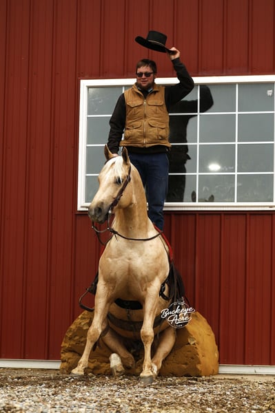 I started my journey in the horse industry in 1995 when I purchased my very first pony at 11 years old. I spent an entire year devoted to training, riding,, and teaching him fun tricks like laying down, sitting, and bowing. I sold him later that year; the feeling of providing a well trained, well behaved, horse was so rewarding that I felt I wanted to continue to share my gift. In 2007, I married my awesome wife Miriam, and we have been blessed with six incredible children (two daughters and four sons) that participate daily with the operation of the farm. What started as myself and a dream has become the full time commitment of my family, and ten employees. The opportunity to share our horsemanship has been so rewarding. In kind, we have been so blessed to learn from professional experts and knowledgeable friends that have voluntarily poured into us their invaluable years of knowledge. Our program has developed, changed, and grown along the way to ensure that we are producing a quality horse that we know we can stand behind. We start by carefully evaluating each horse before purchase. We specialize in quality quarter horses, draft crosses, and also Friesian and Gypsy crosses, from performance to trail riding to leisure. After selection, we take the horse through our groundwork program to get connected with them as individuals. We take them through obstacles and trail ride them, exposing them to anything they may ever encounter. Then, we give the horses a break for up to one month. This allows us to see how the training will stick with them. If they come back in the same place they were before the break we know they are ready to move through the rest of the program and become finished Buckeye Acre Farm horses, learning all of the fun crowd pleasing tricks. We feel we have one of the best soundness guarantees in the business, and we will stand behind that. This has been an awesome journey, and God continues to bless and humble us each and every day. All of us, from our children to our employees, want to provide the best quality horses that you and your families will enjoy for years to come. Over the years we have experienced that the horse market changes, but also that a quality horse is always in high demand. If you see a horse that meets your needs, please reach out to us. I look forward to your call, and to speaking with you personally about your next equine partner. May God bless your day.