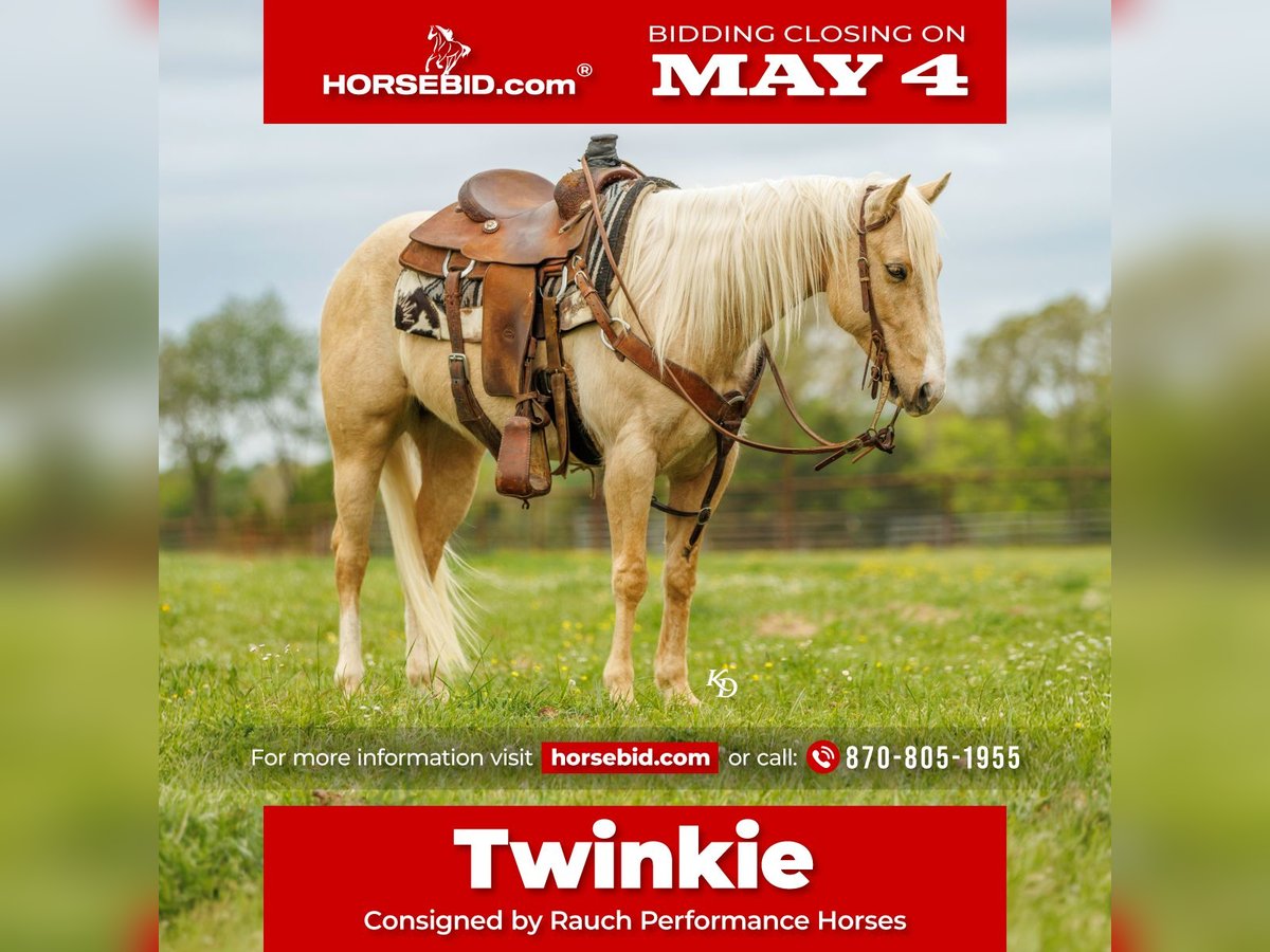 Twinkie, un hongre palomino AQHA de 6 ans et mesurant 14 mains.