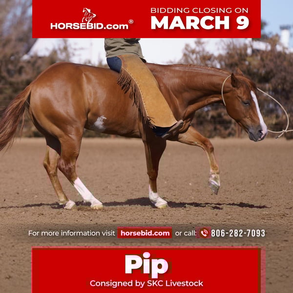 ℳ𝒶𝓇𝒸𝒽 ♦️𝐑𝐈𝐃𝐄𝐑'𝐒 𝐂𝐇𝐎𝐈𝐂𝐄♦️ Happening now thru MONDAY | MARCH 9th - Available EXCLUSIVELY on HorseBid's website! For more details and to register visit: www.Horsebid.com CONSIGNOR CONTACT: SKC Livestock 806-282-7093 LOCATION: Canyon, Tx BREED: Quarter Horse REGISTERED: Yes REGISTERED NAME: Kuruptnme COLOR: Sorrel HEIGHT: 14.2 AGE: 6 GENDER: Gelding