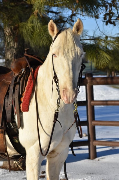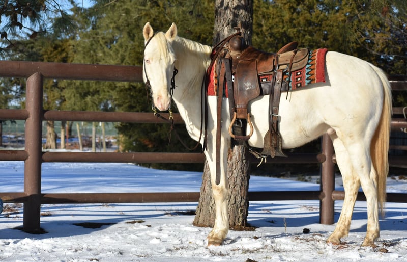 ❤️🔥𝑩𝒆 𝑴𝒊𝒏𝒆 𝐒𝐄𝐋𝐄𝐂𝐓❤️🔥 Happening now thru MONDAY | FEBRUARY 9th - Available EXCLUSIVELY on HorseBid's website! For more details and to register visit: www.Horsebid.com CONSIGNOR CONTACT: Leah Long 641-895-8175 LOCATION: Sulphur Springs, TX BREED: QH REGISTERED: No REGISTERED NAME: Mayo COLOR: Cremello Tobiano HEIGHT: 14.2 AGE: 6 GENDER: Gelding ✨ Mayo – Pretty, Polite, and Packed with Personality ✨ Mayo is 6 year old striking 14.2-hand cremello tobiano gelding with the kind of personality that makes him impossible not to love. He is incredibly gentle, kind, and honest, with a heart as good as his looks. Mayo absolutely adores attention, especially from kids and soaks up every bit of love he can get. Whistle for him and he’ll come running to put his head right in the halter. He is easy to catch, leads quietly, loads with no fuss, ties patiently, bathes well, and stands like a gentleman for the farrier. He is uncomplicated and a pleasure to be around on the ground. Under saddle, Mayo is a confident and willing partner. While he has been ridden by kids and is always gentle and respectful, he is best suited for an intermediate rider as he has a lot of buttons and is very soft in the face. He responds well to his rider, stays honest, and is enjoyable to ride for someone who appreciates a responsive horse. Mayo is a phenomenal trail horse and will cross absolutely anything you point him at steep ditches, logs, water, and rough terrain always taking care of his rider. He has been used outside to push and pen cattle, has been started on tracking the dummy, and shows a great mind for working outside. He is also a versatile gelding with experience beyond the trail. Mayo has dabbled into jumping and has had some reining training in the past, making him a well rounded horse that’s happy to try whatever job you give him. To top it all off, Mayo is eligible for PtHA papers. If you’re looking for a sweet, honest, eye catching gelding with a great mind and a lot of potential, Mayo is truly one of a kind, the kind everyone in the barn falls in love with.