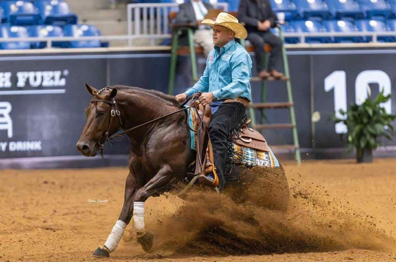 🎲LE CHOIX DU CAVALIER🎲 En ce moment jusqu’au LUNDI 17 NOVEMBRE – Disponible EXCLUSIVEMENT sur le site HorseBid ! Pour plus de détails et pour vous inscrire, rendez-vous sur : www.Horsebid.com CONTACT DU VENDURO : Premier Horses LLC 417-761-2580 LIEU : Buffalo, Missouri RACE : Quarter Horse ENREGISTRÉ : Oui NOM ENREGISTRÉ : Good Lil Spook – Sire par Smart Spook, gagnant en NRHA COULEUR : Alezan TAILLE : 14,3 hh ÂGE : 5 ans SEXE : Étalon Faites la connaissance de Good Lil Spook, plus connu à l’écurie sous le nom de « Hitman ». Ce magnifique étalon bai foncé, à la robe de foie, ne passe pas inaperçu où qu’il aille — non seulement pour son apparence, mais aussi pour son talent, son tempérament et sa confiance tranquille. Hitman est par le légendaire Smart Spook, un étalon NRHA ayant produit plus de 8,5 millions de dollars de gains en compétition, avec des gains à vie de plus de 405 000 $. Il est issu d’une mère gagnante en compétition et reproductrice, dont les foals perpétuent cette lignée performante. Avec un tel pedigree, il n’est pas surprenant que Hitman possède à la fois la génétique et la capacité pour briller en concours et devenir un atout précieux dans tout programme de reproduction. Il incarne l’équilibre et la qualité — ossature solide, corpulence épaisse, conformations parfaites, tout en restant raffiné avec cette tête de poupée classique que tout le monde aime. Son riche pelage de foie brillant sous le soleil, sa longue crinière abondante et sa queue épaisse accentuent sa présence impressionnante. Chaque détail, de sa posture à la douceur de son regard, témoigne d’un cheval à la fois élégant et doté d’un caractère exceptionnel. Sur le terrain, Hitman est tout en sérieux — puissant, précis et élégant. Il a été couru avec succès en Niveau 4 Open, avec une note solide de 217, et a gagné plus de 1 600 $ en NRHA. C’est un grand stopper qui glisse profondément et droit, avec des spins rapides et réactifs, ainsi que des cercles rapides et fluides, tout en restant doux en bride. Ses changements de main sont fluides, et sa cadence ainsi que son rythme en font un plaisir à regarder et à monter. C’est le genre de cheval qui facilite une belle présentation en concours. Mais ce qui distingue vraiment Hitman, c’est son tempérament exceptionnel. Malgré son talent et sa puissance, il est d’une gentillesse et d’une tranquillité remarquables. Il adore les gens et accueille chaque visiteur de son box avec un petit nickering. Dans l’écurie, il est d’une douceur extrême — respectueux, doux, et toujours désireux de plaire. Même s’il est étalon, il se monte et se gère comme un hongre. Notre fille de 6 ans le monte régulièrement, et ils s’adorent mutuellement. Il est patient, stable, et possède cette rare confiance qui en fait un cheval très apprécié. En dehors du terrain de concours, Hitman est aussi polyvalent que fiable. Il aime les balades en extérieur, franchit ponts, obstacles et passages d’eau sans hésitation. Il ouvre et ferme les portails, va chercher le courrier, et travaille même le bétail — toujours calme et confiant, peu importe l’environnement. Sa sûreté de pied et sa confiance tranquille en font un plaisir à monter partout. Good Lil Spook, c’est le package complet — pedigree de classe mondiale, record de performances, conformation irréprochable, et une disposition en or. Que vous cherchiez votre prochain cheval de concours, un reproducteur de premier ordre ou simplement un partenaire gentil avec l’allure et le caractère pour faire fondre les cœurs, Hitman est un étalon rare. Il a passé un examen préalable à l’achat.