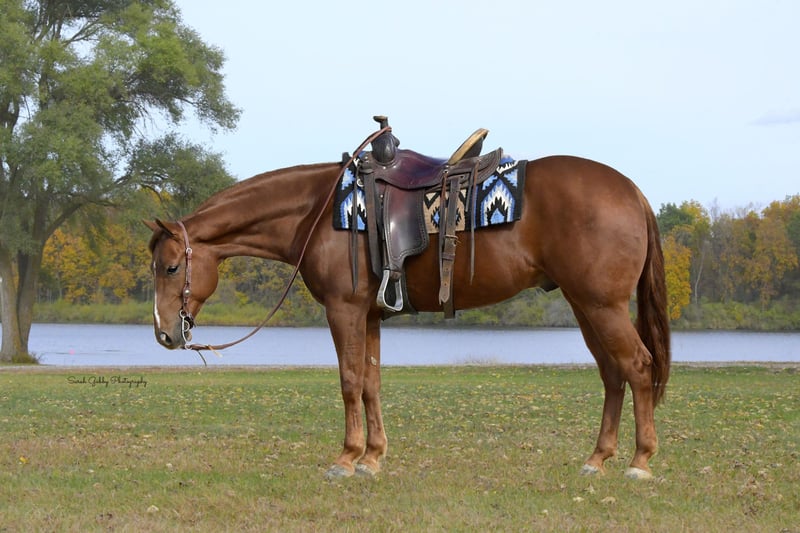 ⚜️𝐓𝐇𝐄 𝐅𝐀𝐋𝐋 𝐇𝐄𝐑𝐈𝐓𝐀𝐆𝐄 𝐂𝐋𝐀𝐒𝐒𝐈𝐂⚜️ Happening now thru MONDAY | NOVEMBER 3rd - Available EXCLUSIVELY on HorseBid's website! For more details and to register visit: www.Horsebid.com CONSIGNOR CONTACT: One Stop Performance Horses 507-208-5994 LOCATION: Oelwein, IA BREED: AQHA REGISTERED: Yes REGISTERED NAME: Mr Melody Shines *by Shine Chic Shine* COLOR: Sorrel HEIGHT: 14.3 AGE: 5 GENDER: Gelding Shine is a 5yr old own son of Shine Chic Shine and out of a daughter of Mr Melody Jac that stands 14.2hh and boasts the conformation of an athlete bred to be as great as his papers suggest. Shine has had a consistent 3 years of professional reining training and is solid in all the maneuvers. His solid training makes him an easy auto pilot ride and his mind and gentle demeanor make him very novice and youth safe. He is a natural big stopper, has a great turnaround, solid lead change, and is a push button ride. Besides all of his reining training, Shine has also been out on the trails and really enjoys his time out. He will cross creeks, ride right down the road, and is happy to go out alone or with others. He is also great at all arena obstacles including ground poles, bridges, the teeter-totter bridge, and is great with the tarp, dragging logs or the tire, and will carry the flag. This gelding is gentle every day, whether laid off for a week or months at a time. Which has made Shine a barn favorite and enjoyed by everyone who meets him, including a 12yr old boy. Shine is easy to care for and has required no special care or maintenance of any kind. He stalls great, enjoys turnout, gets along with others, ties, cross ties, bathes, clips, and loads and hauls like a pro. This gelding would be ideal for someone to take and show in the ranch horse events, enjoy out on the trails or around the farm, and could easily double as an all around youth show horse as well all while being easily maintained at home. AQHA registered, 5 Panel negative, current negative coggins, and has his NRBC certificate. Clean legged, great feet, and the only blemish to him is a very very small scar on his front right heal from an old heal bulb injury that is purely cosmetic and only noticeable if pointed out. " Shine has been out of a professional reining program for the past 9 months getting experience under his belt outside of the arena, and with different riders of all different backgrounds. His current sale video is footage taken all within the last couple of weeks, showing 3 different riders on him of all ages, including a 12yr old boy. Also showing him in and out of the arena, riding bridleless, obstacles, and riding right down the road. The second video included is from 9months ago showing full reining pattern work under professional reining training. One Stop Performance Horses does not own this horse and is acting as Seller's Agent"